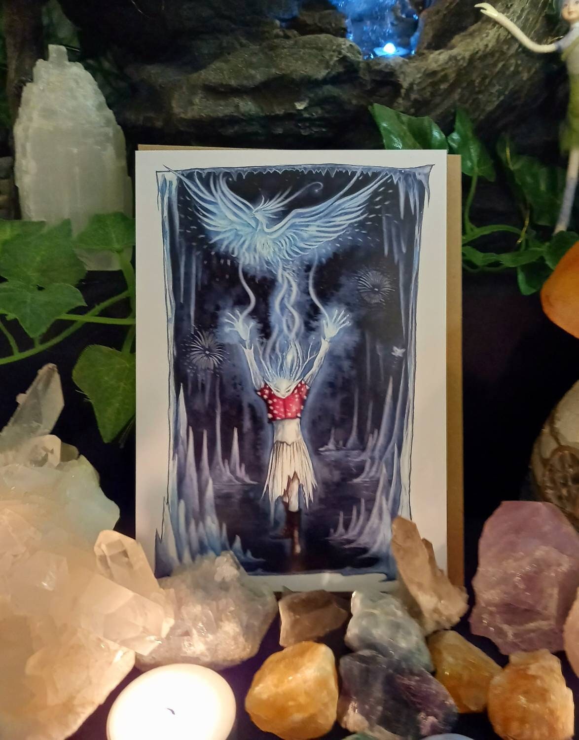 Fly Agaric is one of the mycelie mushroom characters from my new children's book 'Maple and the Crystal Cavern' she is a shaman and weaver of magic!