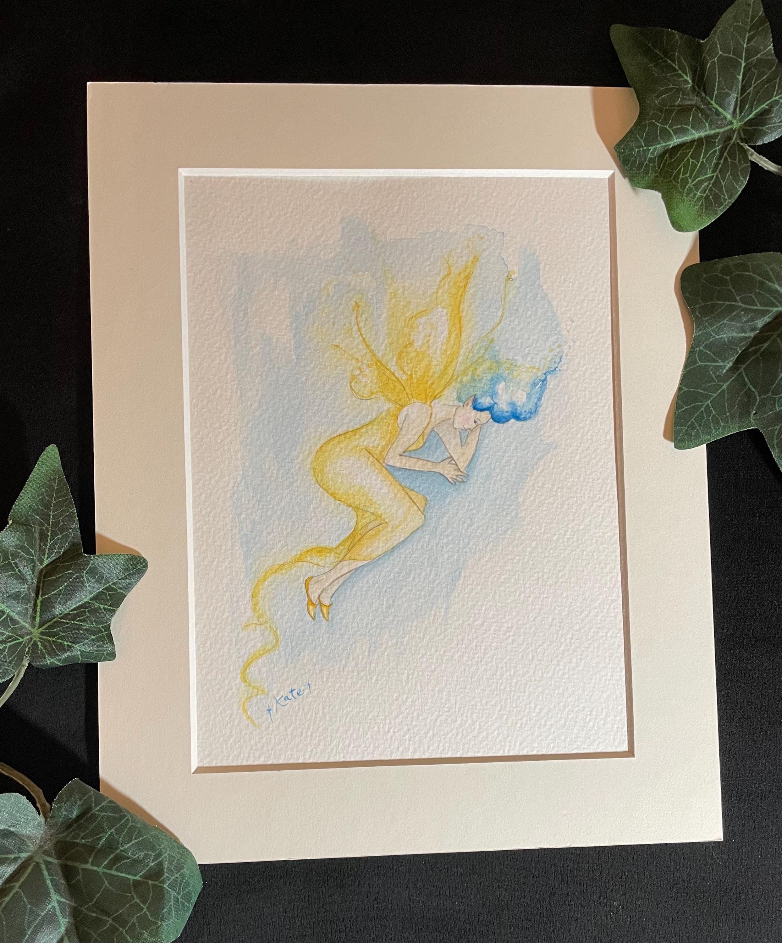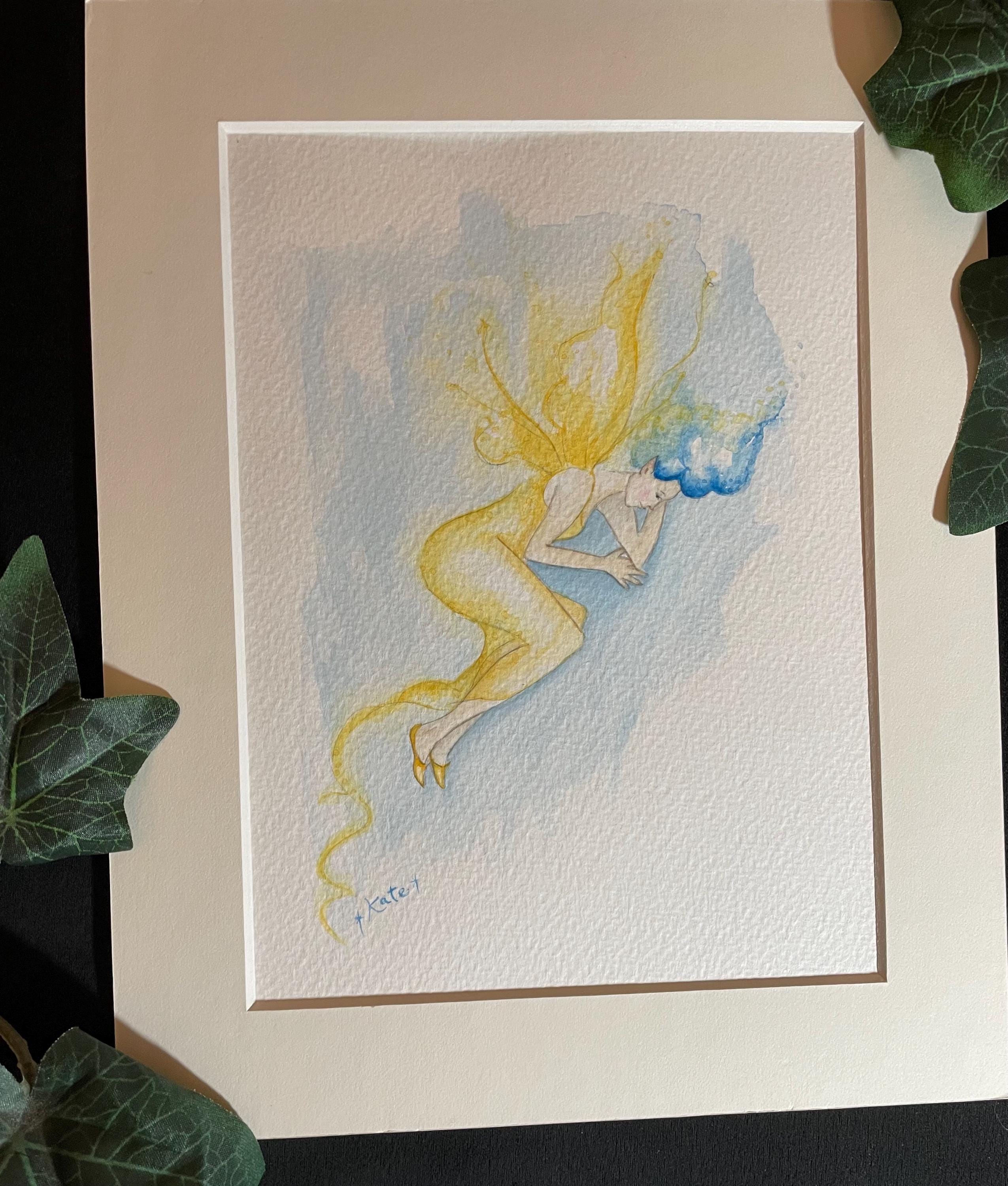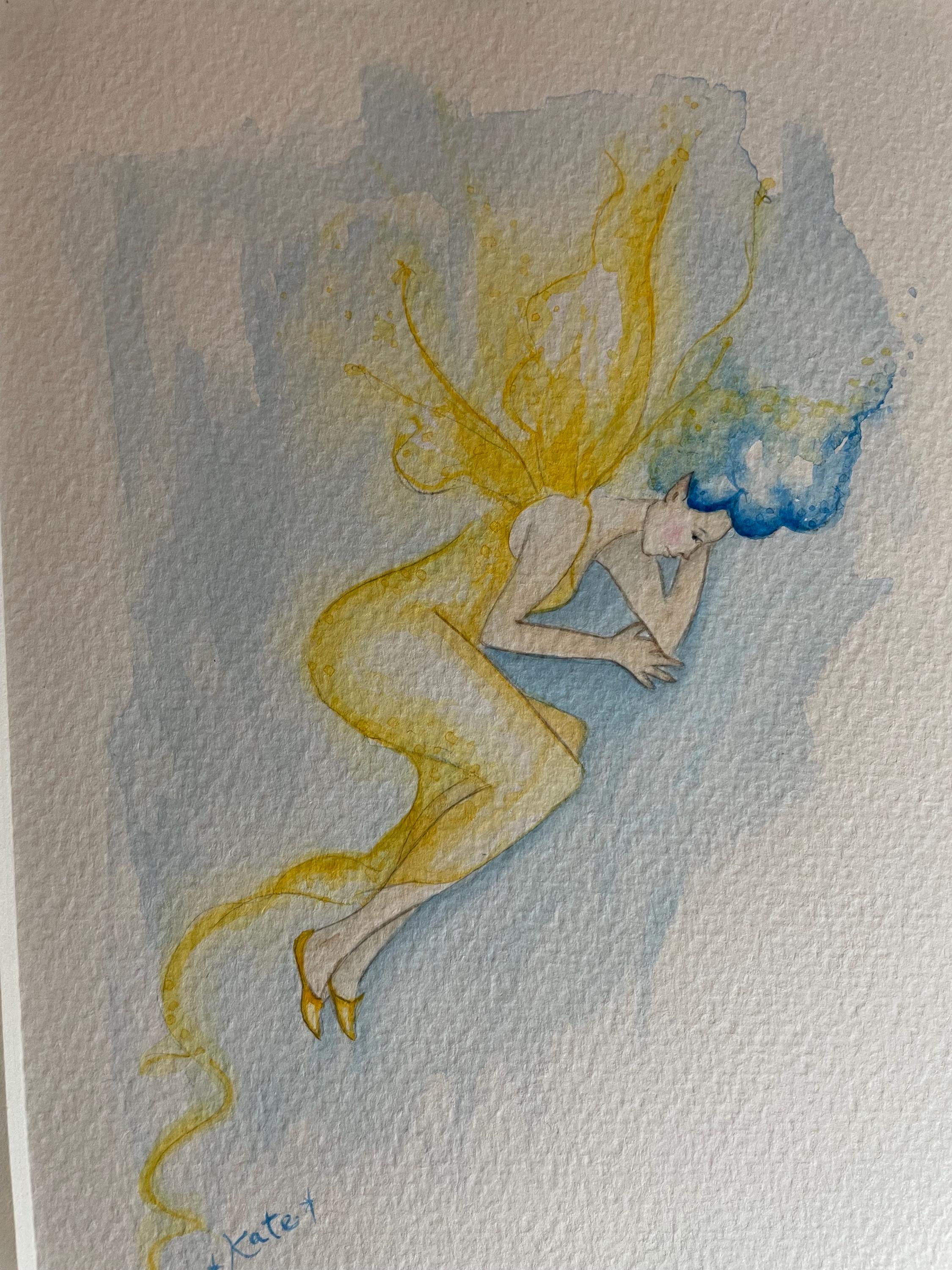 A sleeping fairy the colour of Topaz with beautiful blue hair