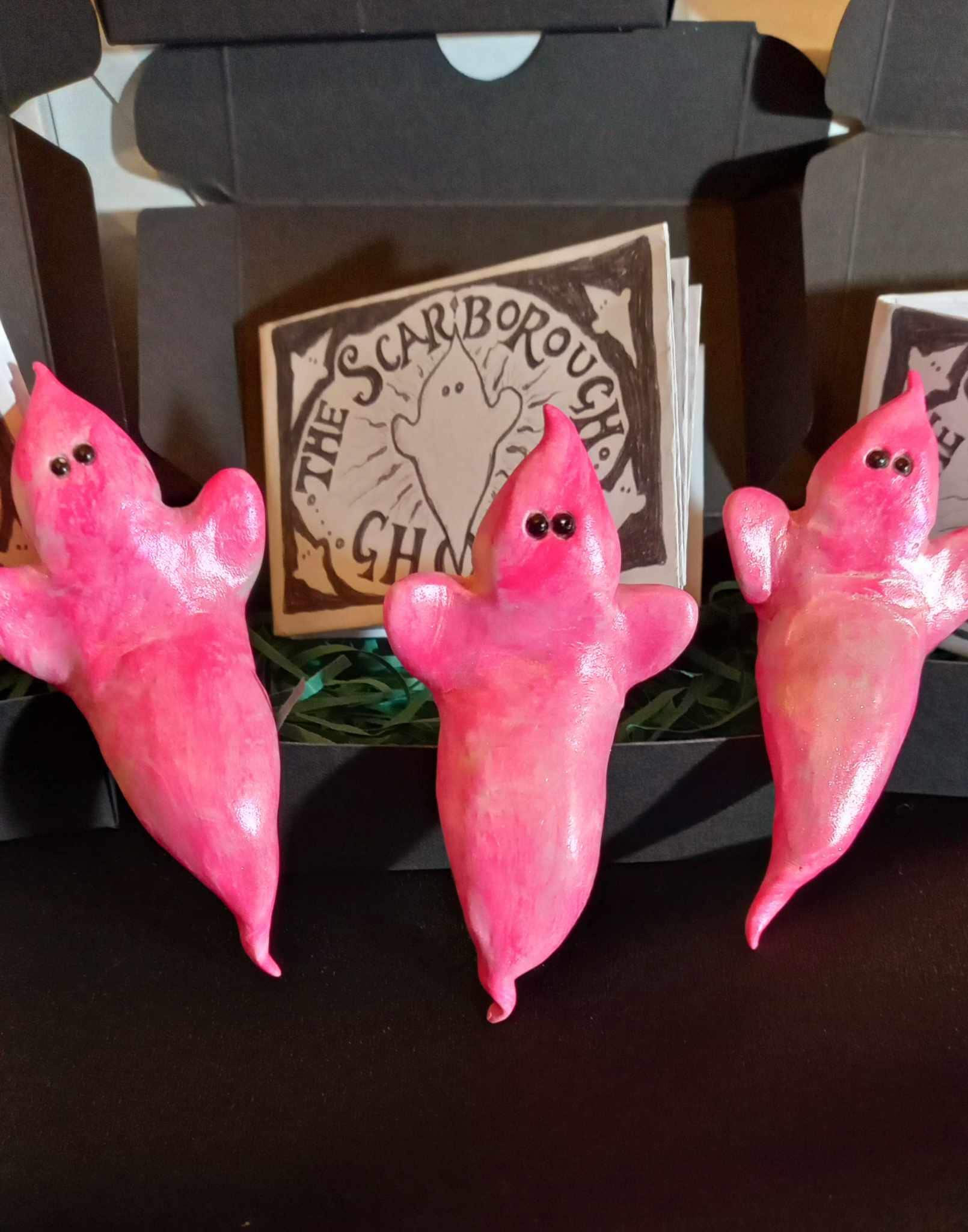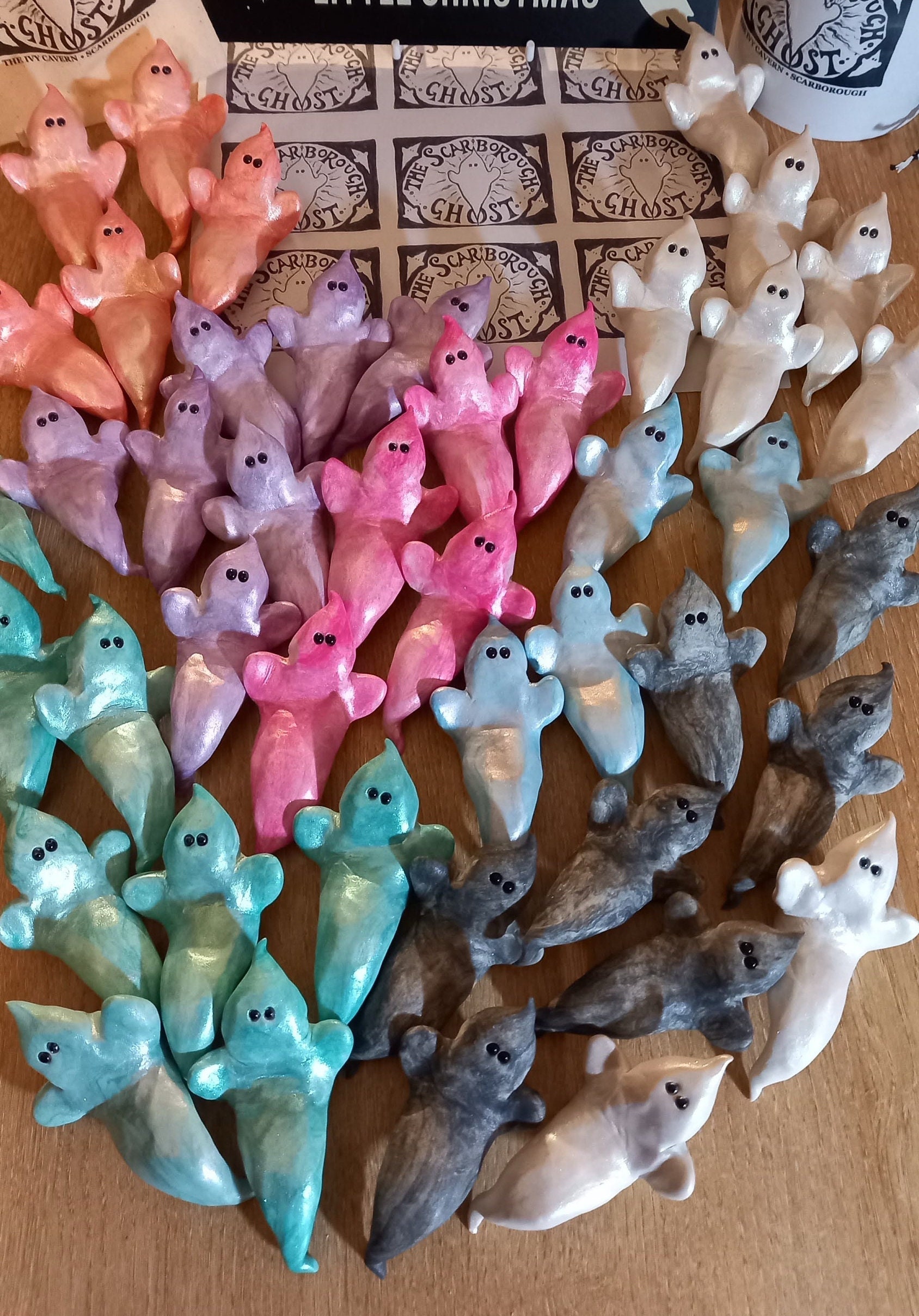 This gave me the idea that Scarborough should have it's very own ghost to celebrate the rich history of the market and the Old Town beyond. So one day back in 2020 the very first Scarborough ghost was created originally known as a 'Vaults Ghost' I named him Walter Vaultergeist. Soon I made more ghosts and started to sell them in my shop, strangely the first day I displayed the ghosts all the water mysteriously 'jumped' out of the water feature in my shop (no crack could be detected!) who knows if it was ghostly going's on or faulty electrics!