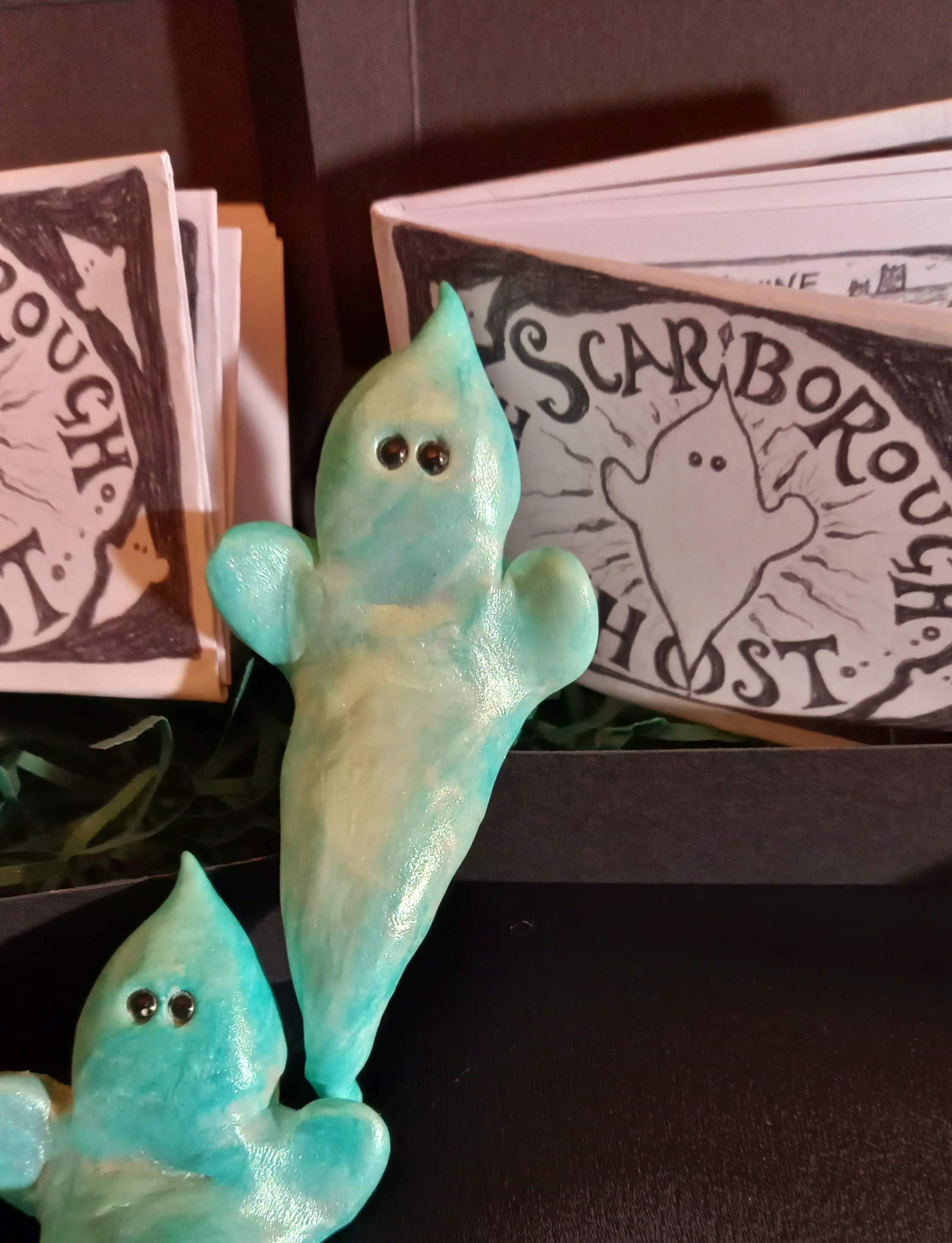 This gave me the idea that Scarborough should have it's very own ghost to celebrate the rich history of the market and the Old Town beyond. So one day back in 2020 the very first Scarborough ghost was created originally known as a 'Vaults Ghost' I named him Walter Vaultergeist. Soon I made more ghosts and started to sell them in my shop, strangely the first day I displayed the ghosts all the water mysteriously 'jumped' out of the water feature in my shop (no crack could be detected!) who knows if it was ghostly going's on or faulty electrics!