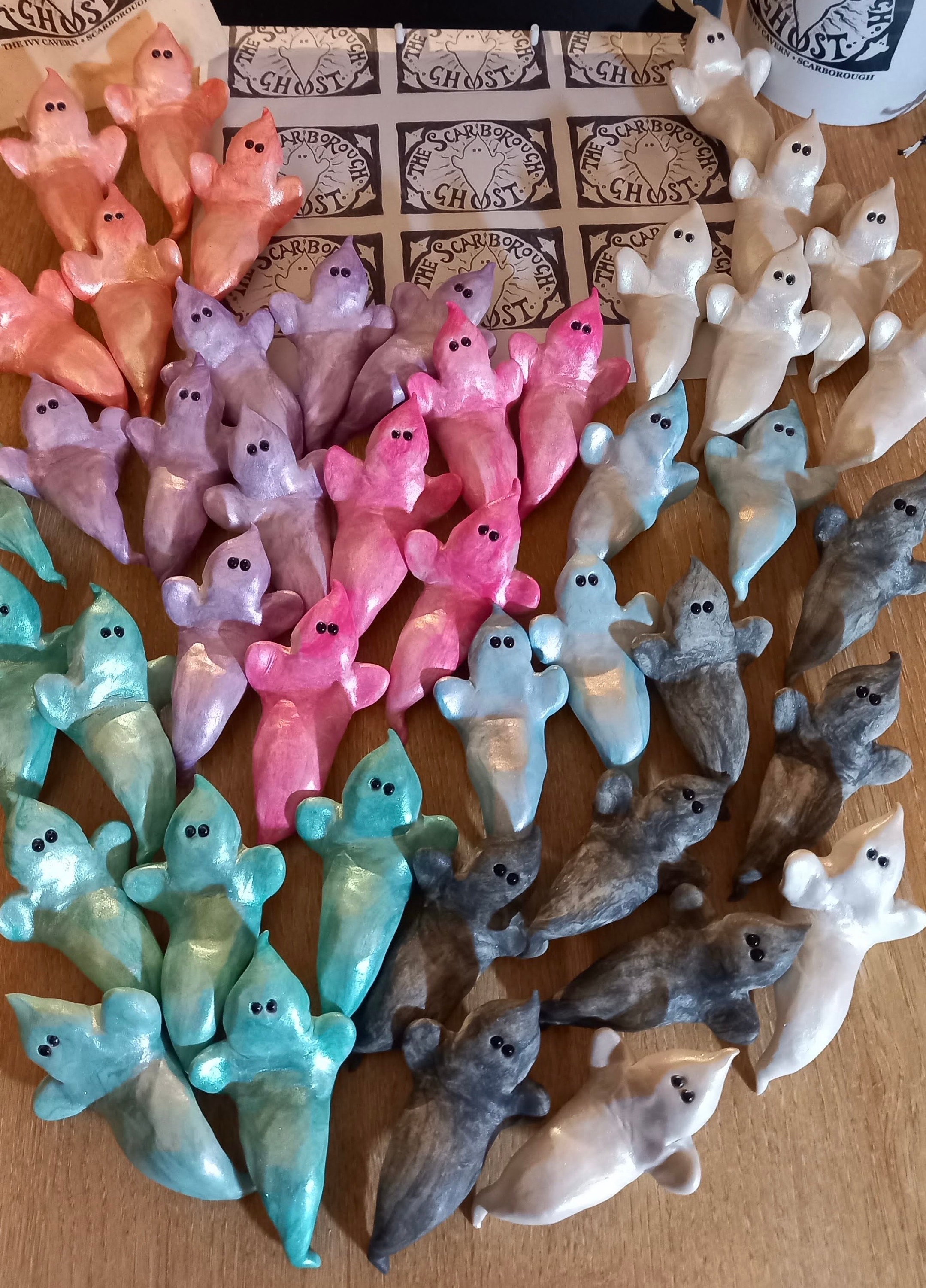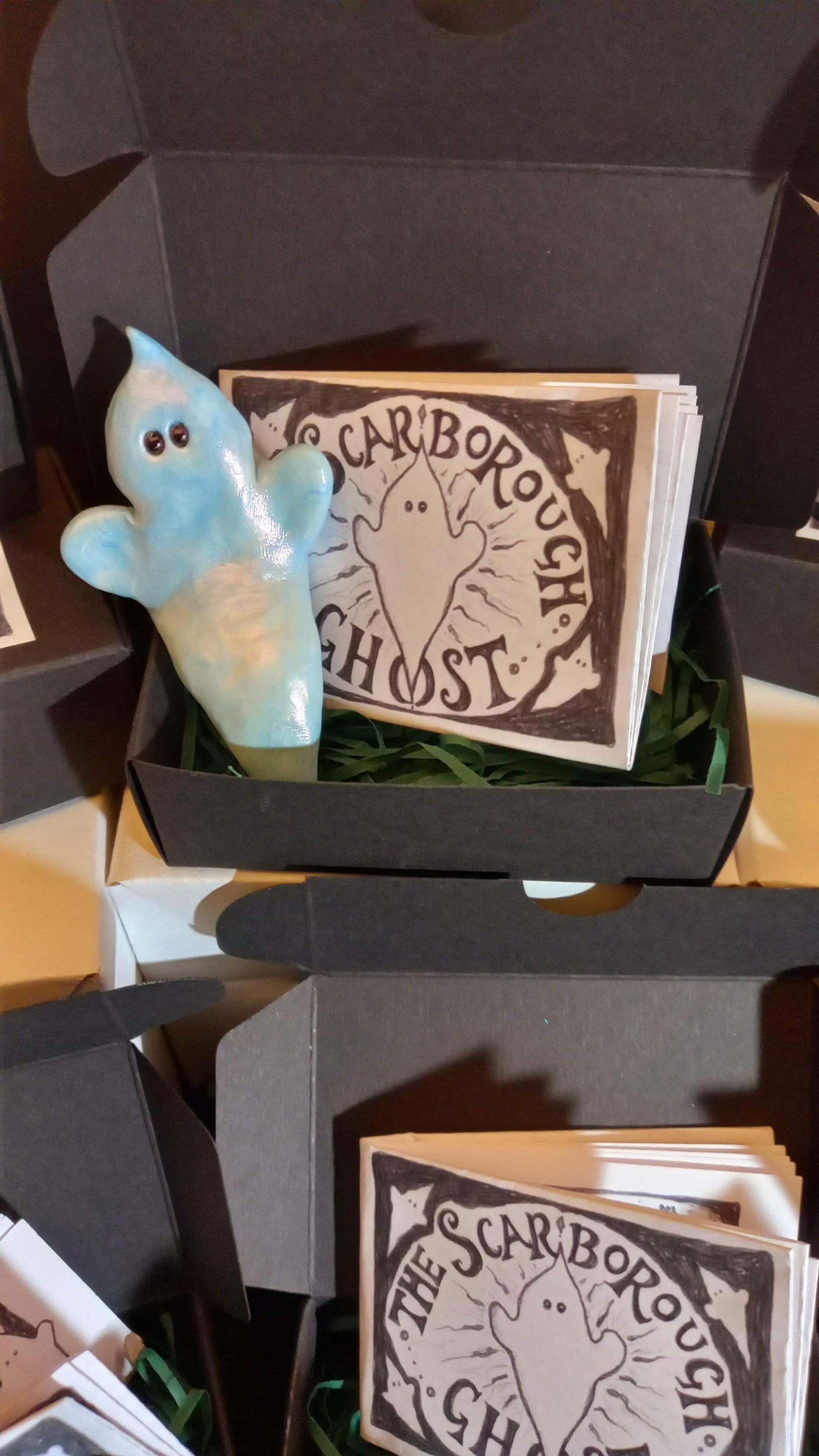 This gave me the idea that Scarborough should have it's very own ghost to celebrate the rich history of the market and the Old Town beyond. So one day back in 2020 the very first Scarborough ghost was created originally known as a 'Vaults Ghost' I named him Walter Vaultergeist. Soon I made more ghosts and started to sell them in my shop, strangely the first day I displayed the ghosts all the water mysteriously 'jumped' out of the water feature in my shop (no crack could be detected!) who knows if it was ghostly going's on or faulty electrics!
