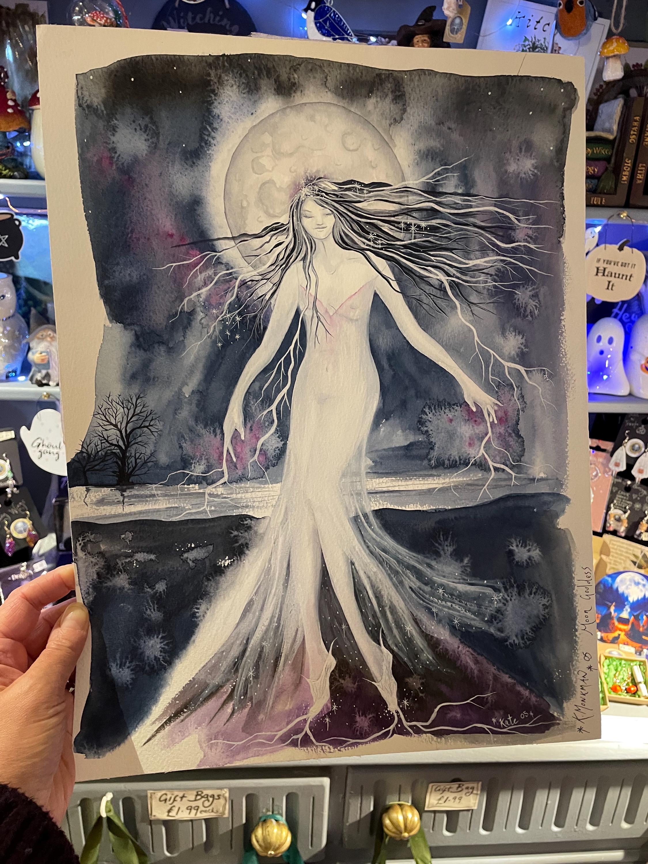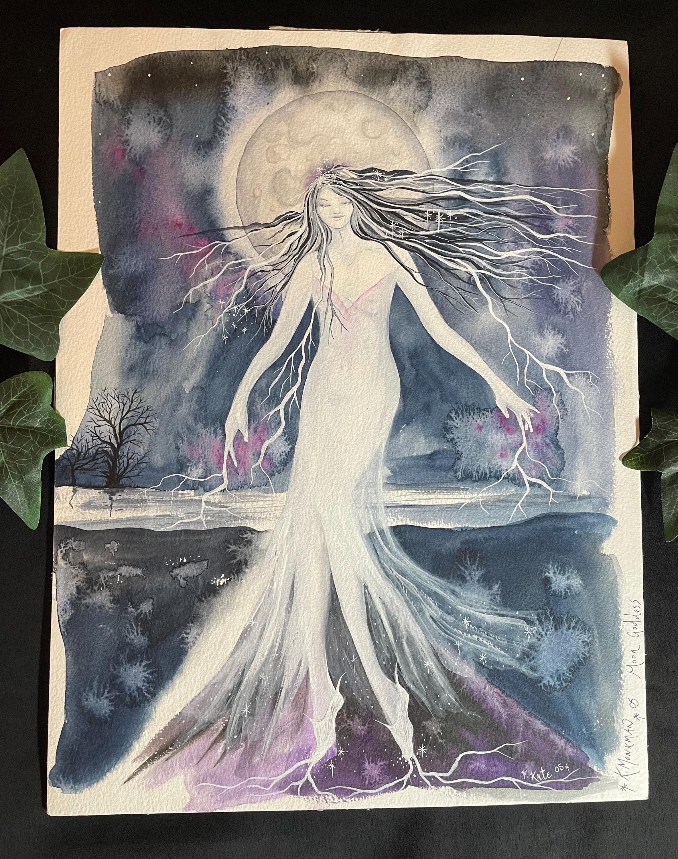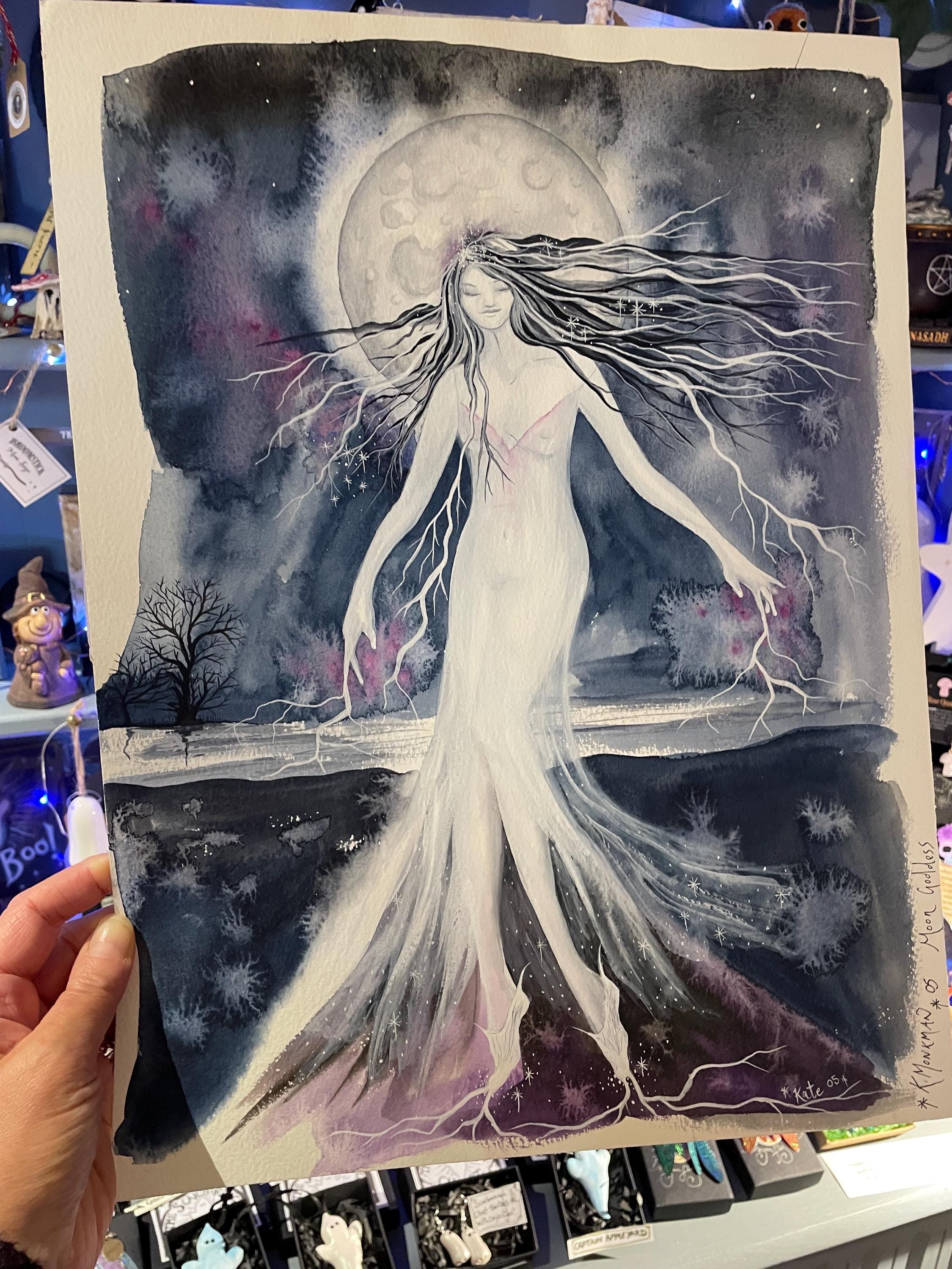 This listing is for my original watercolour painting Moon Goddess, she's a powerful goddess of the moon, strong and serene.