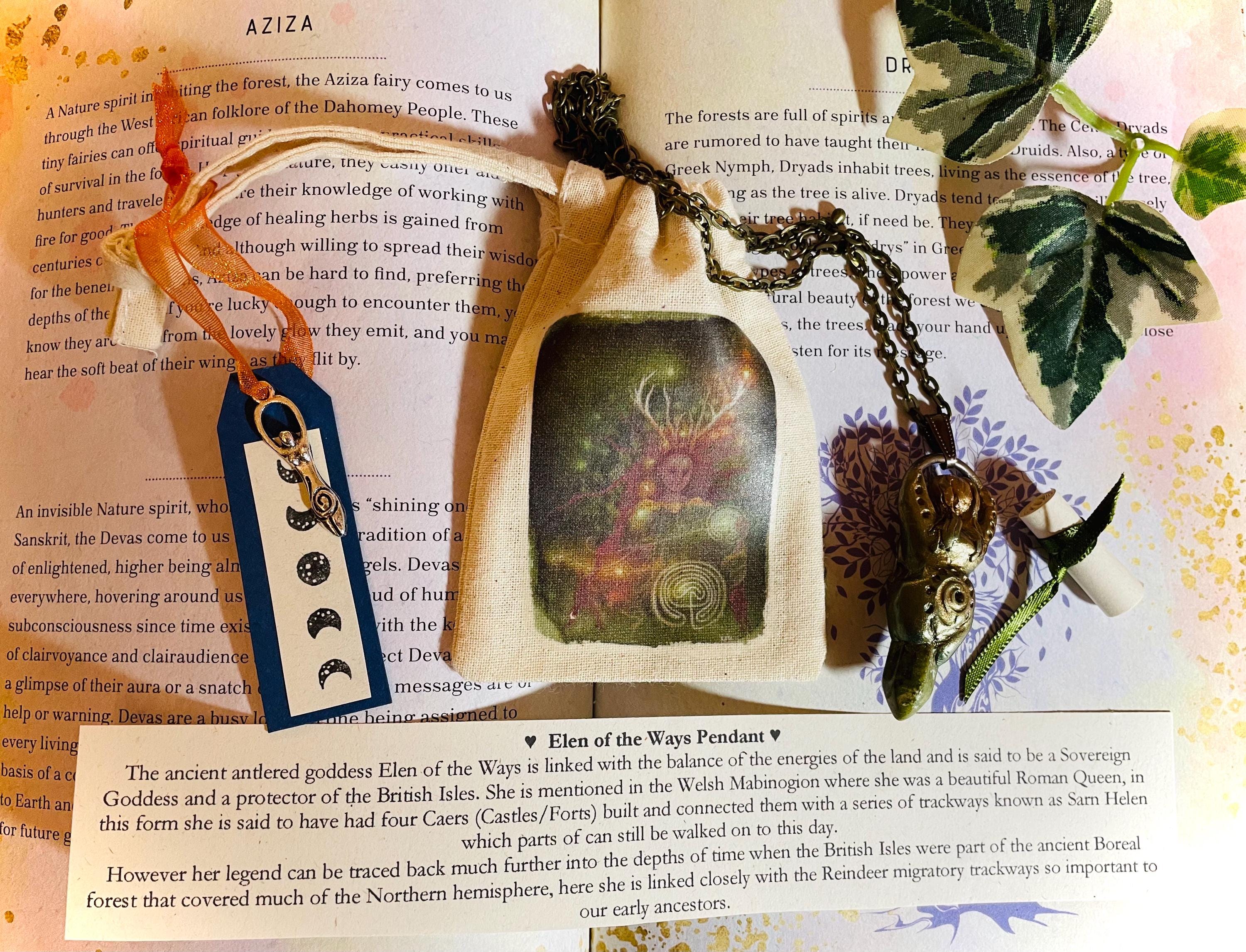 Presented in a beautiful gift pouch featuring my Elen of the Ways Pathweaver artwork with special moon phase tag with gemstone meaning scroll.