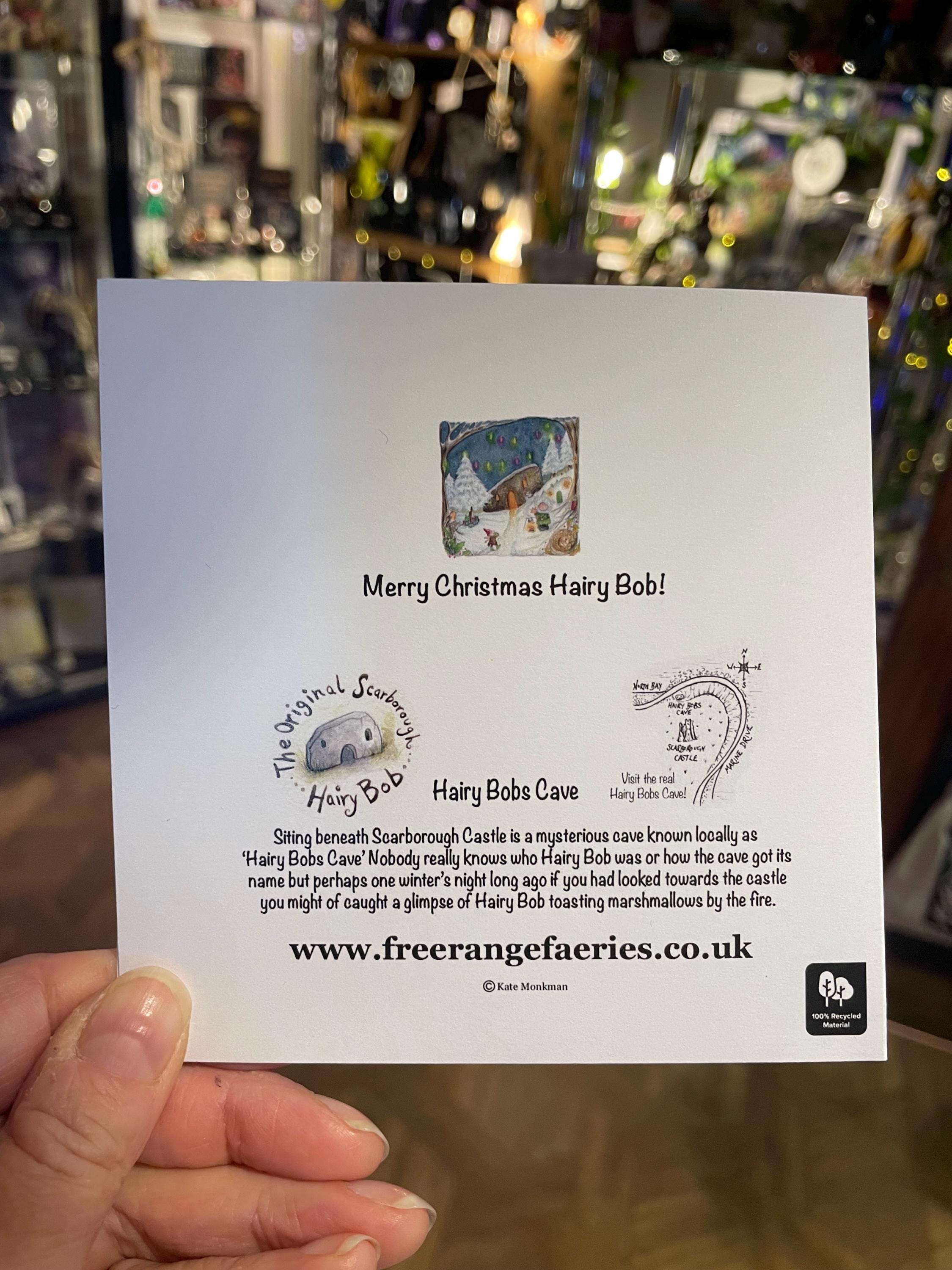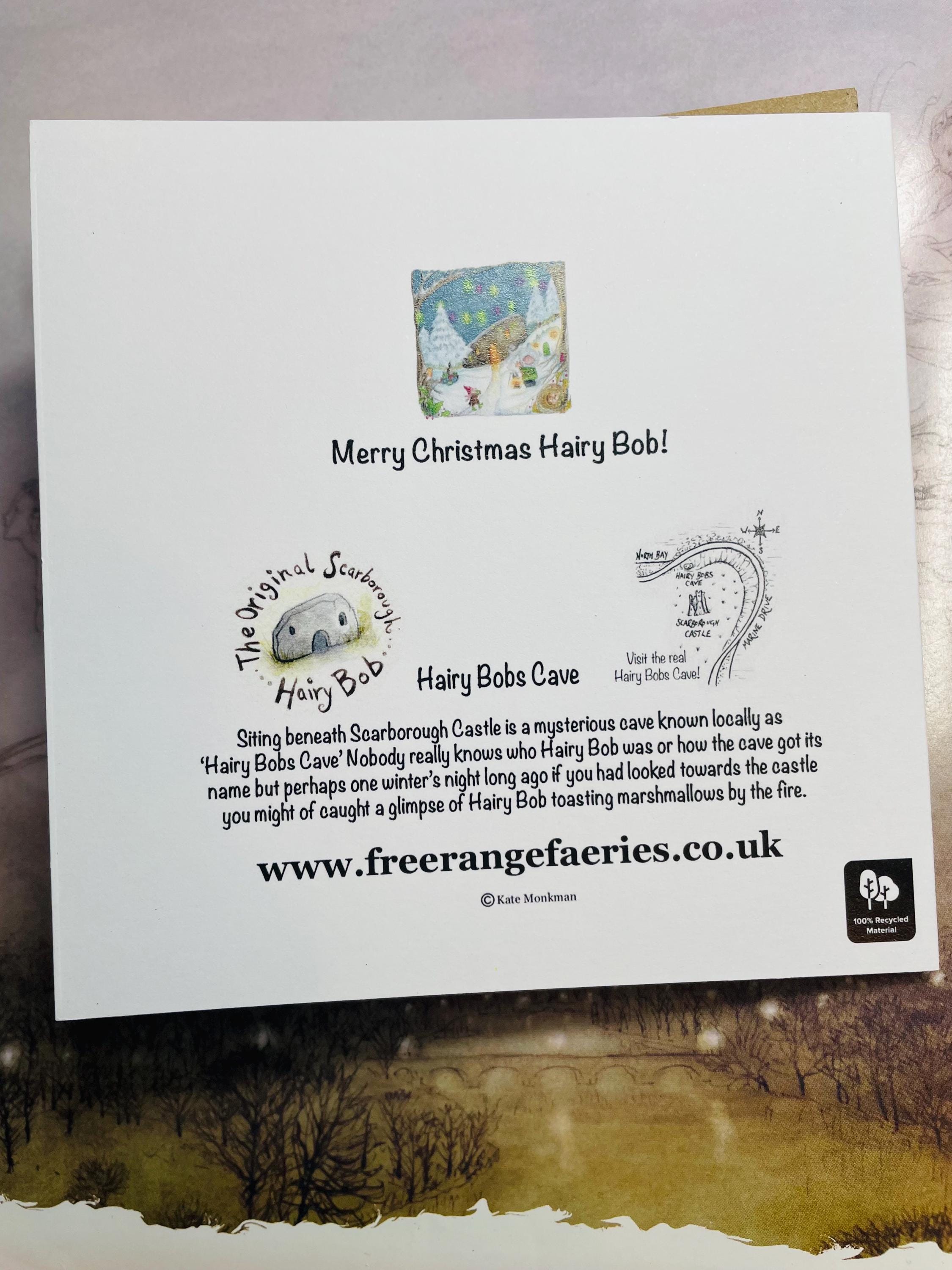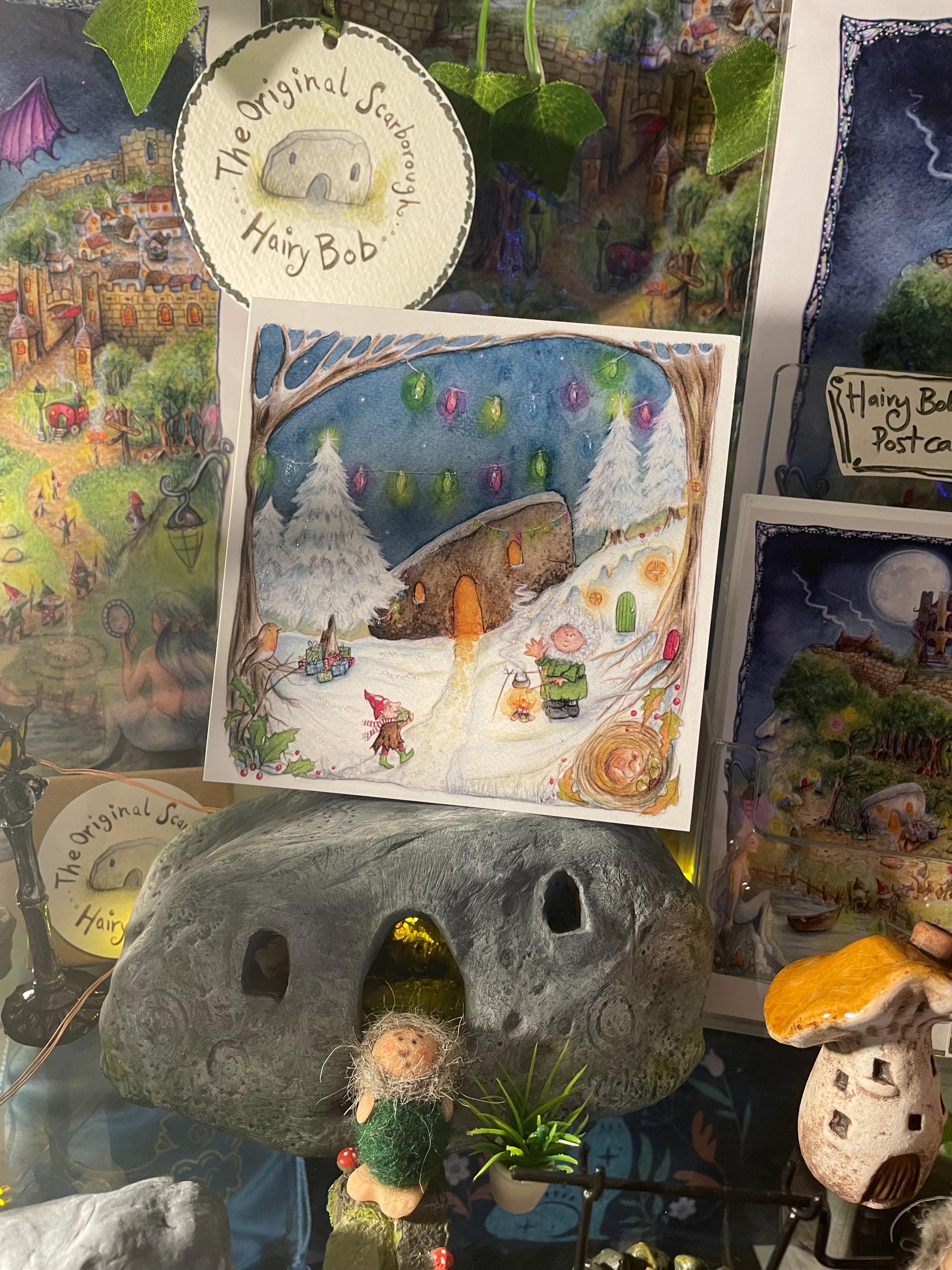 Artwork taken from my original Christmas painting 'Merry Christmas Hairy Bob!' featuring Scarborough's famous landmark:- Hairy Bob's Cave