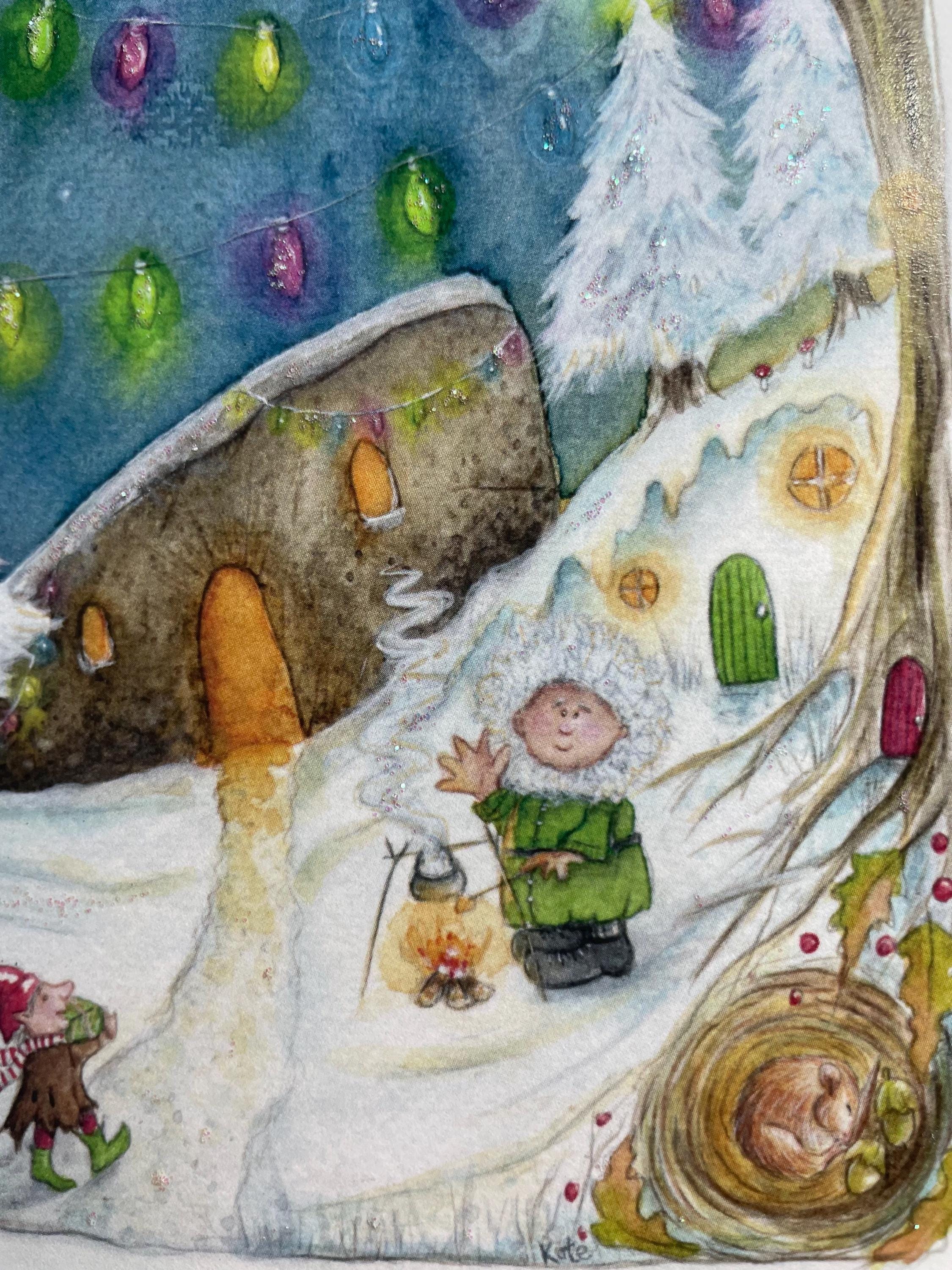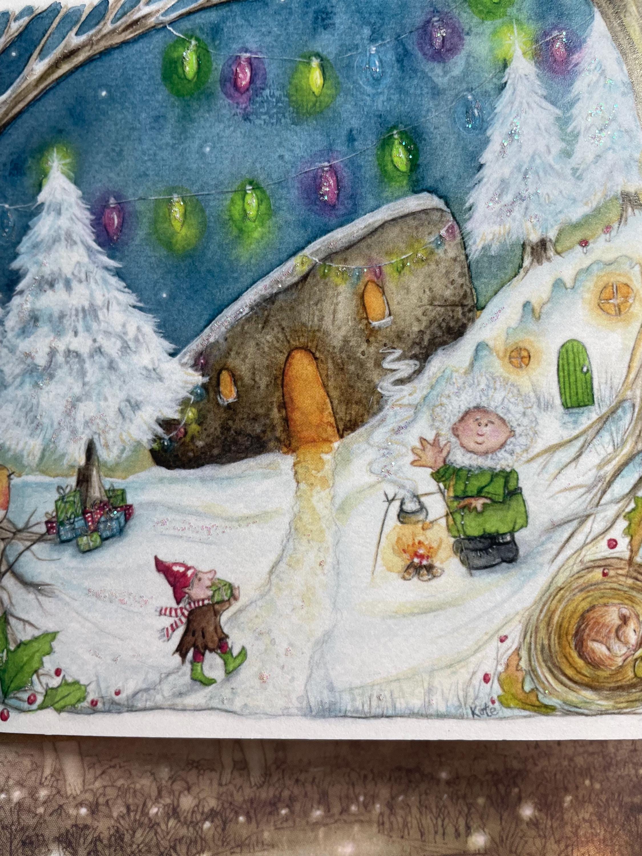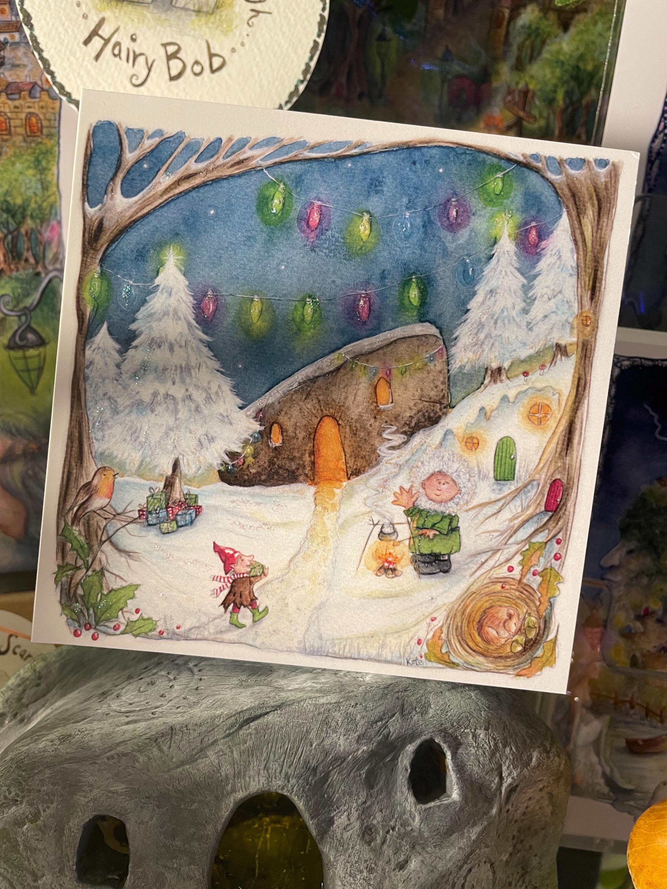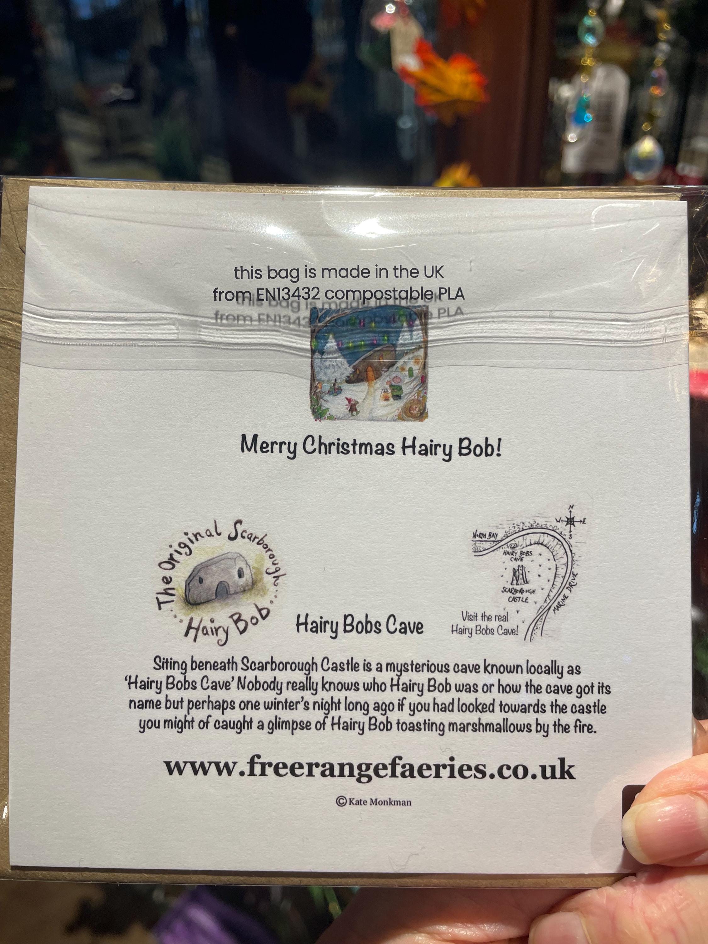 Artwork taken from my original Christmas painting 'Merry Christmas Hairy Bob!' featuring Scarborough's famous landmark:- Hairy Bob's Cave