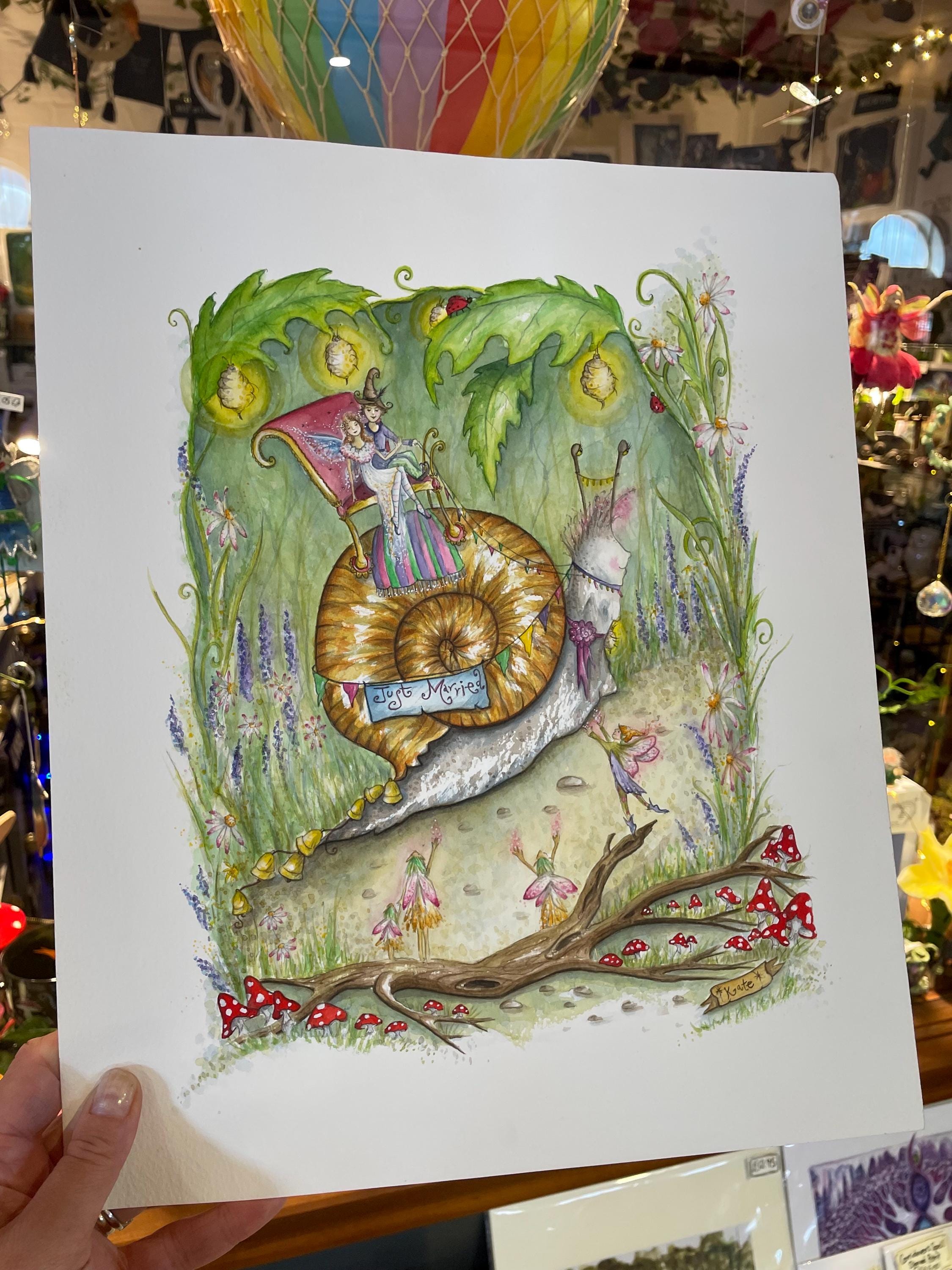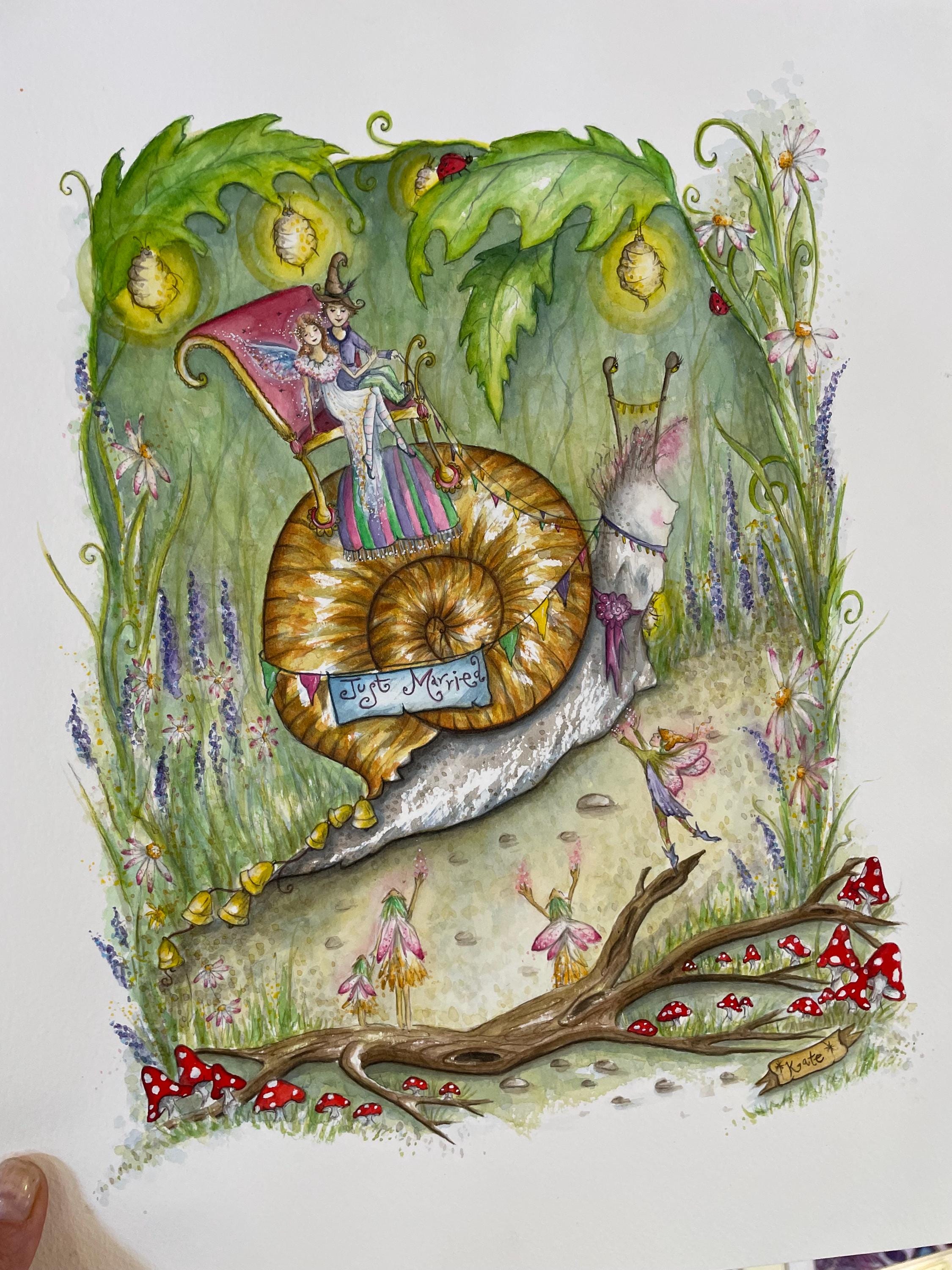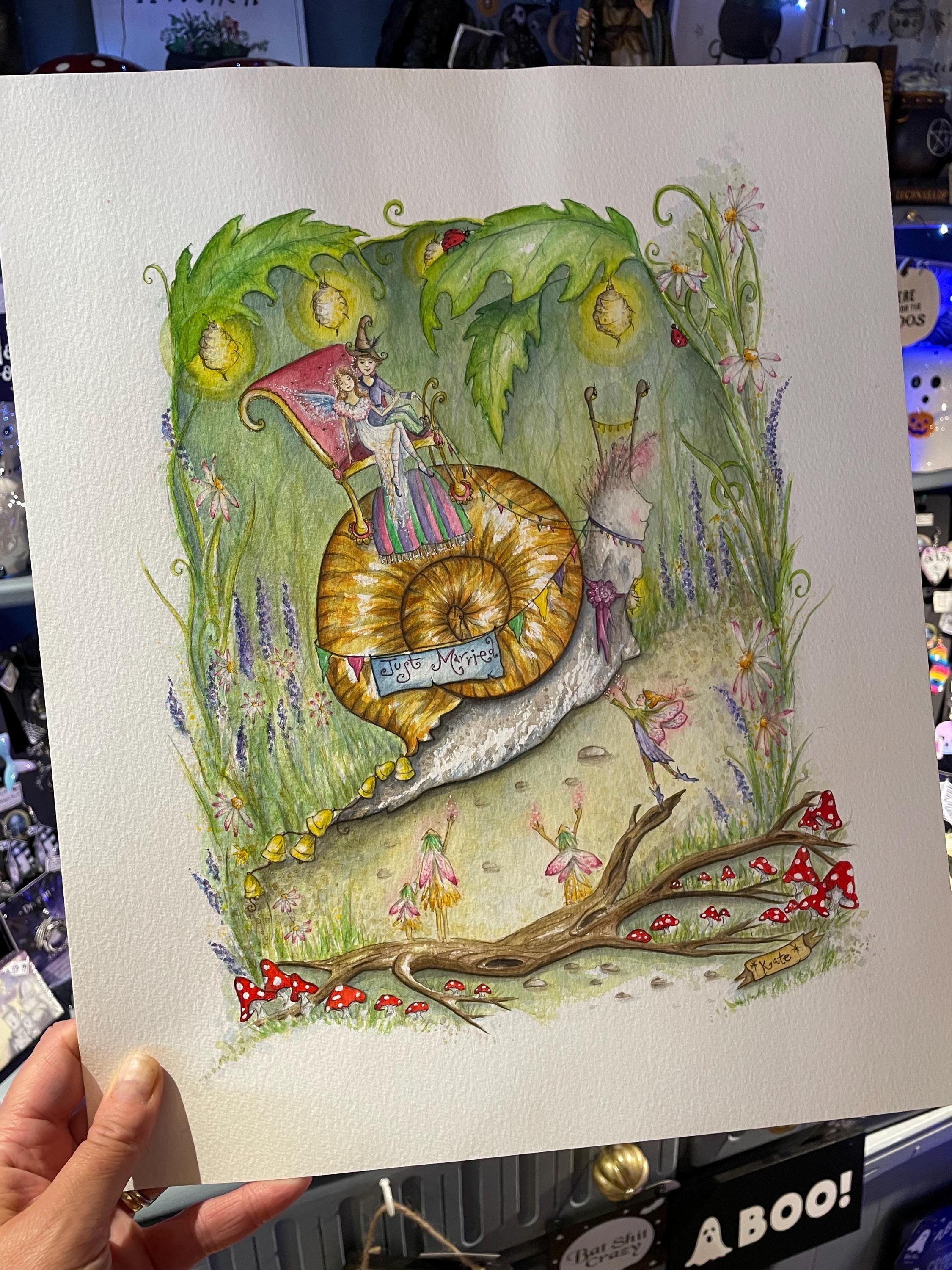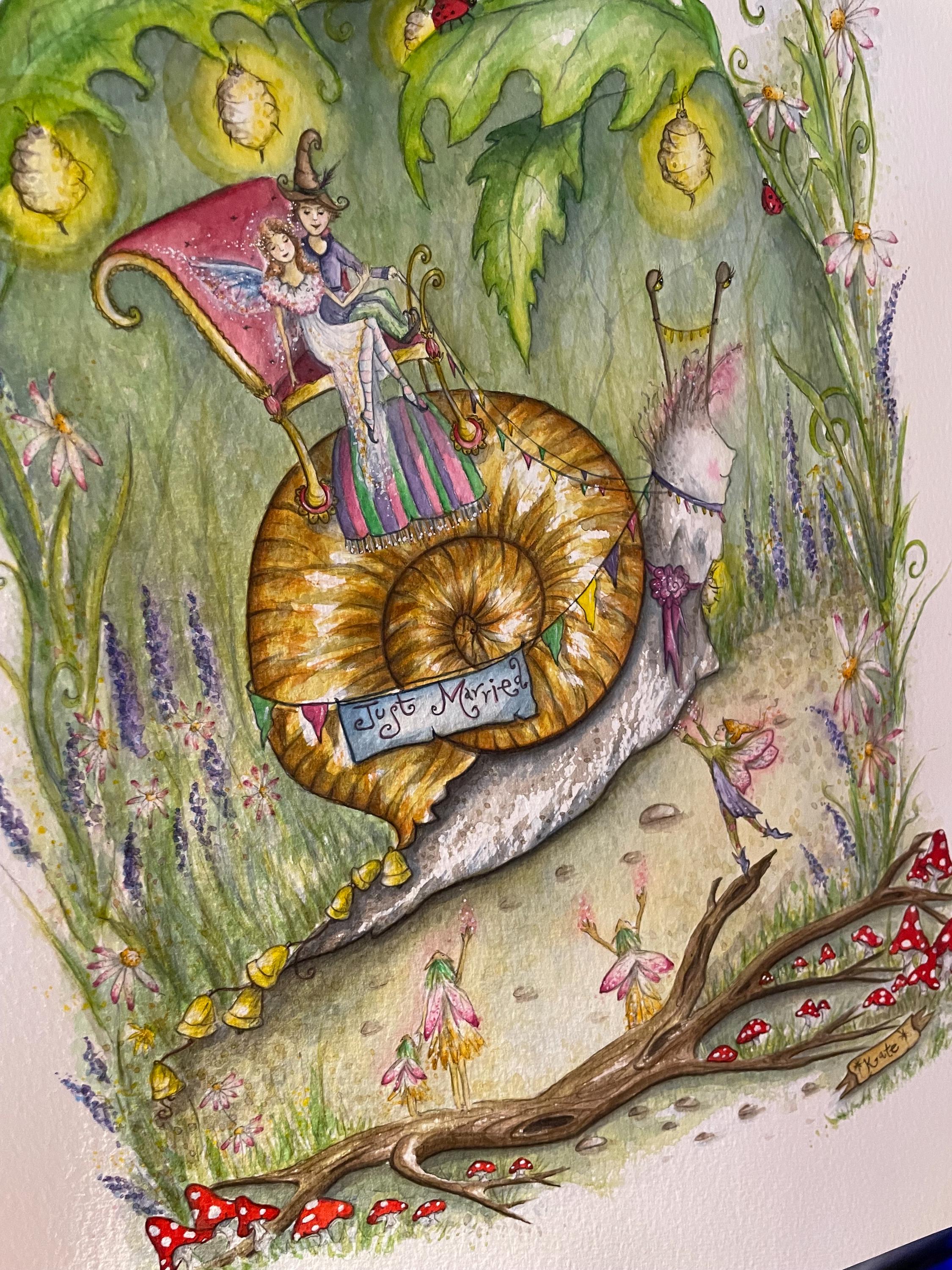 A fun illustration that I painted as I wanted an artwork would be suitable for making wedding cards, I had lots of fun painting all the little creatures & fairies celebrating the wedding procession
