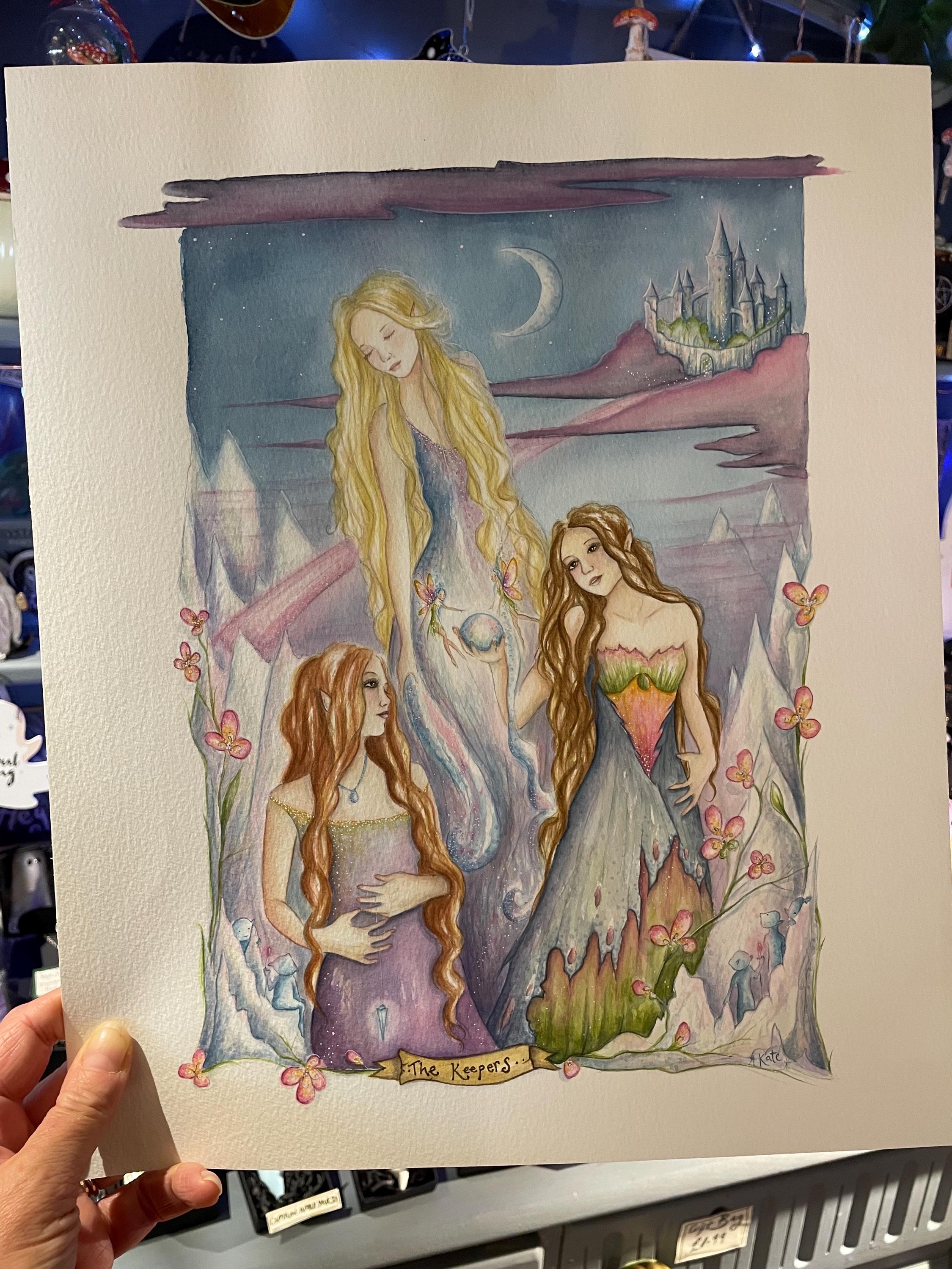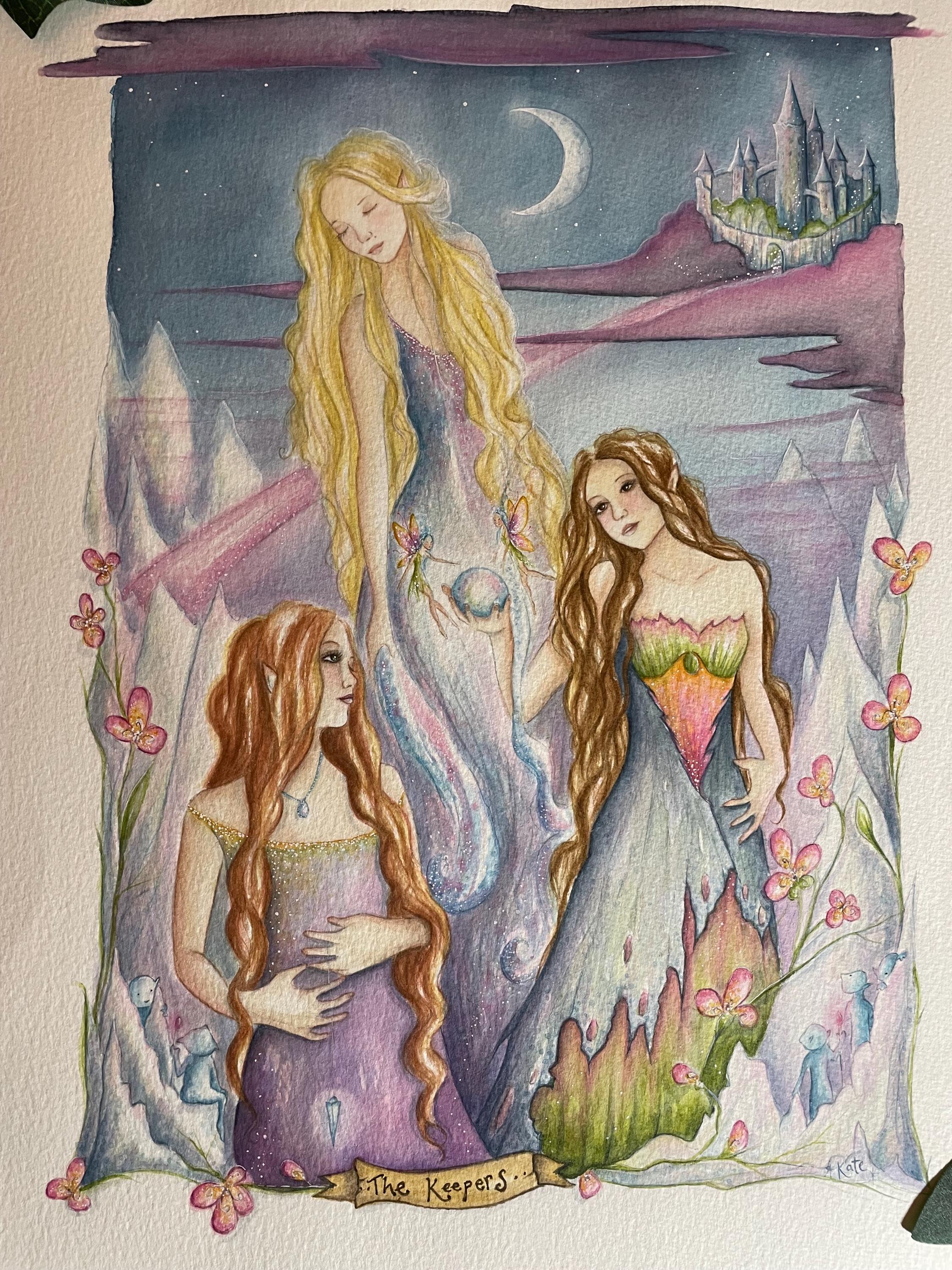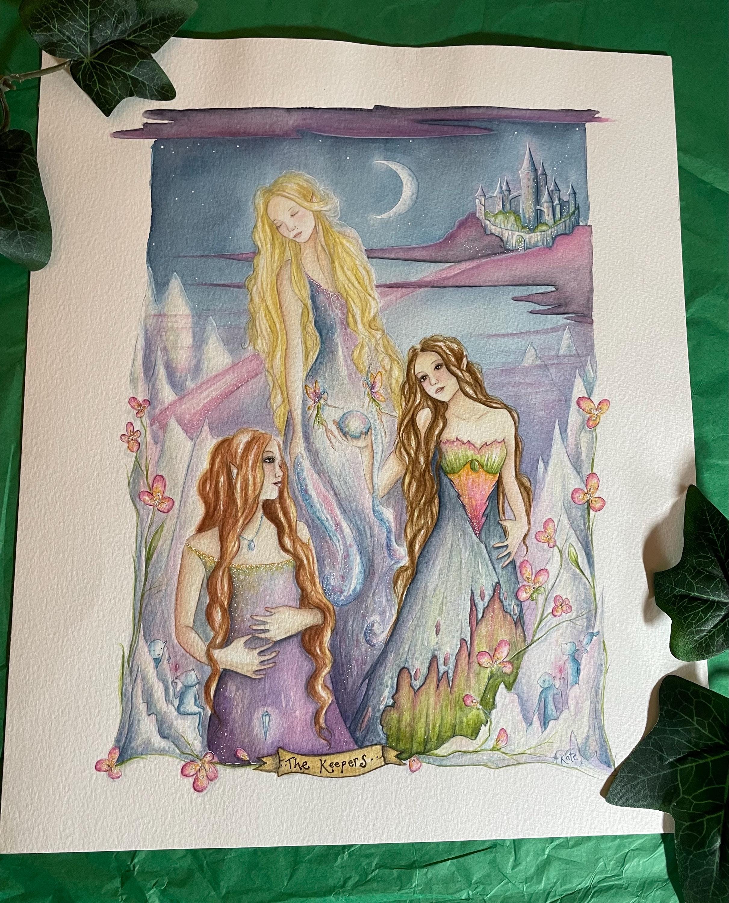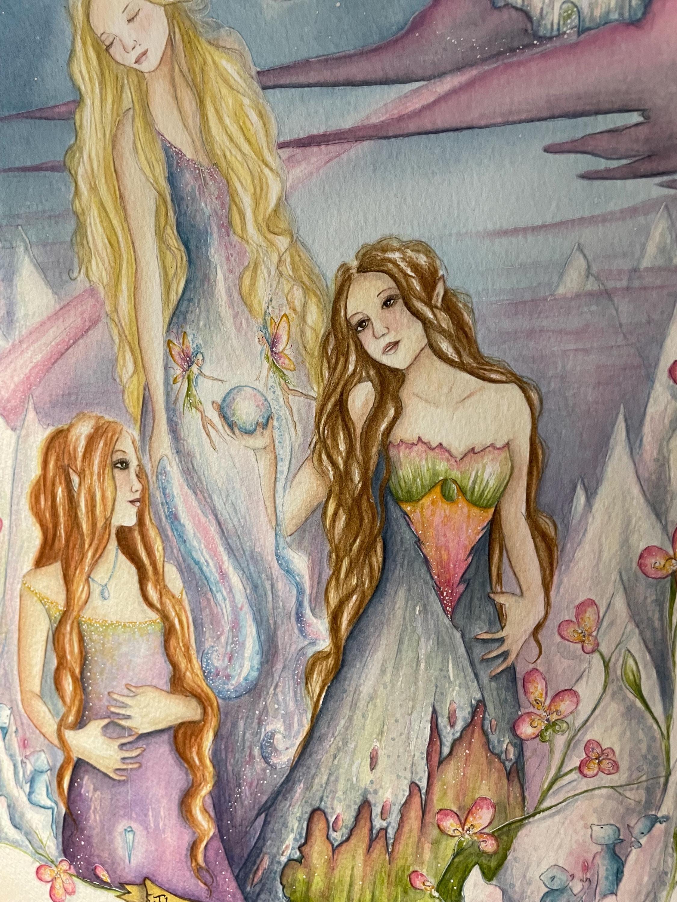 This painting is my interpretation of Asgard one of the nine worlds in Norse mythology & home to the fortress of the Aesir, it is connected to midgard (the Human realm) by a magical rainbow bridge