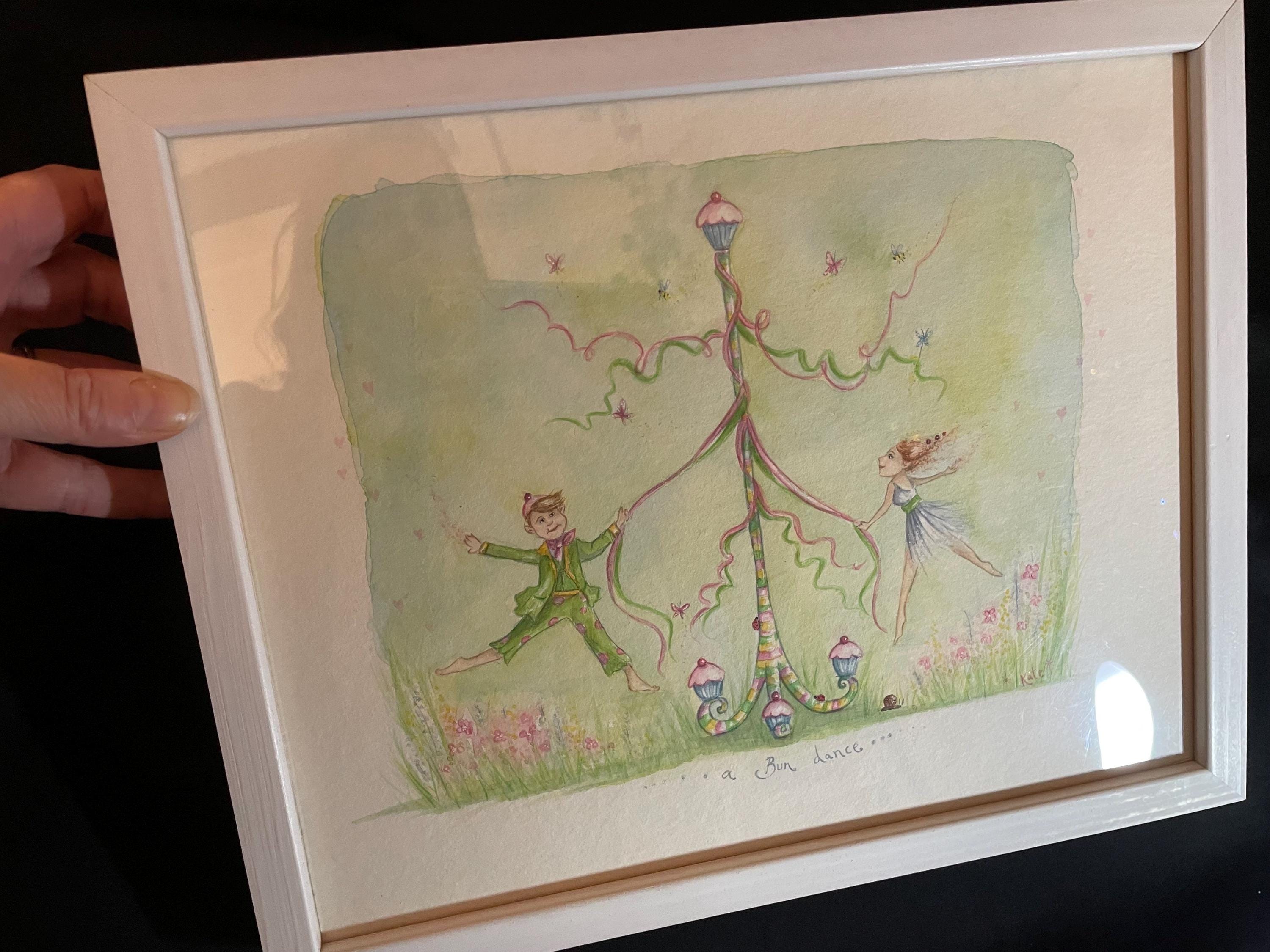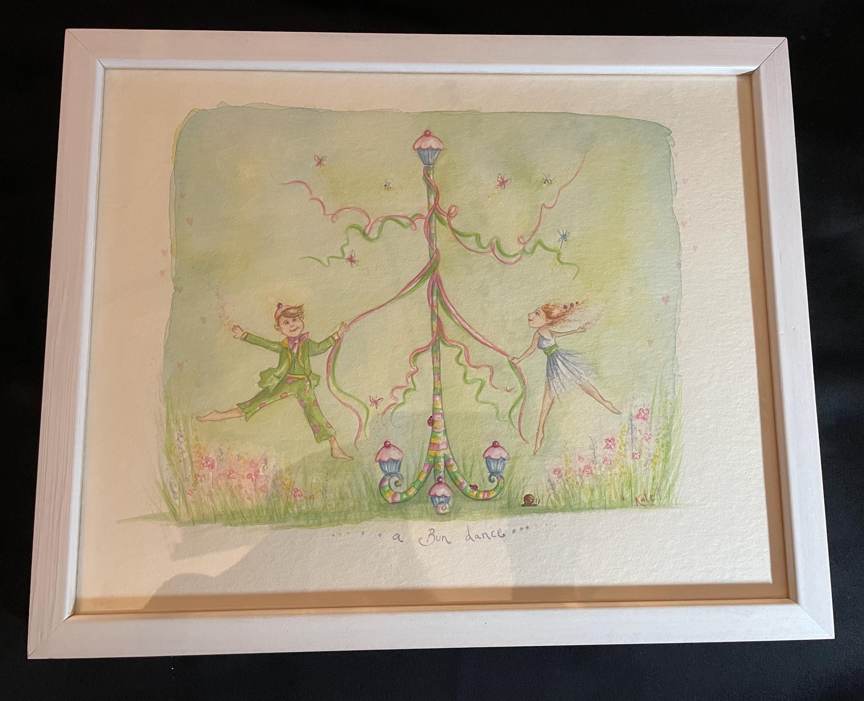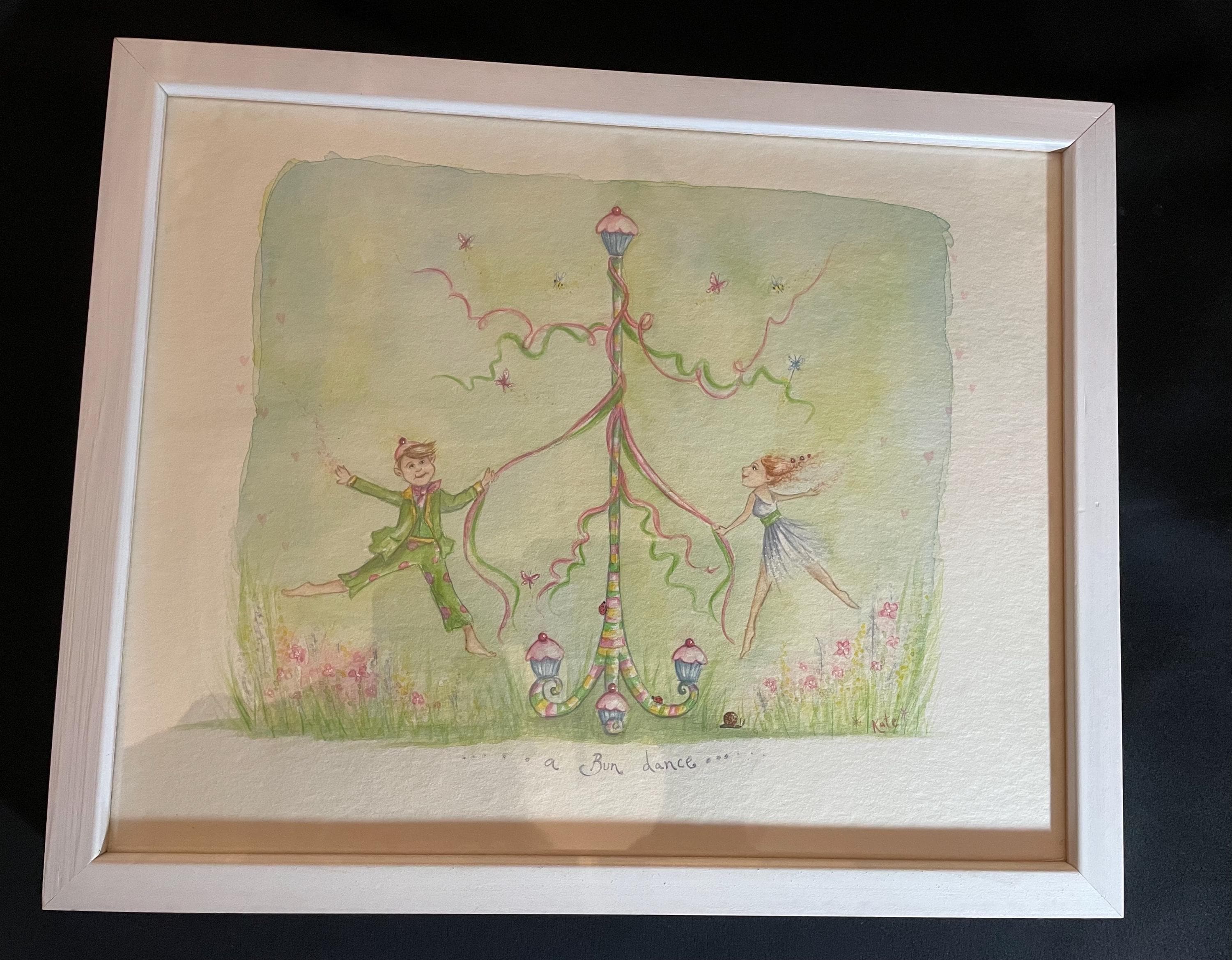 Painted as part of the Enchanted visions project for the theme Abundance, the painting is to celebrate the abundance of spring with the maypole surrounded by flowers, cakes, hearts & bumble bees