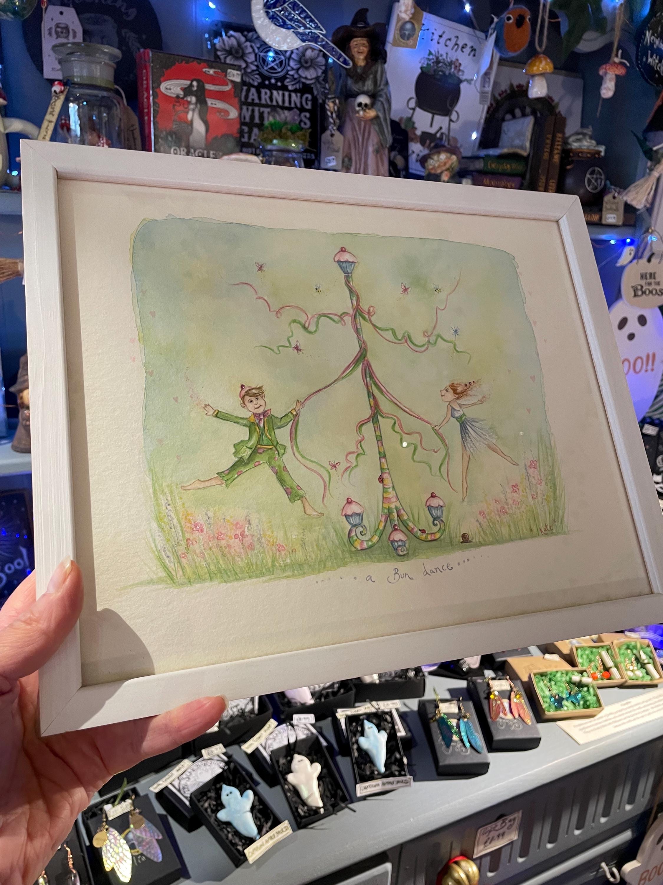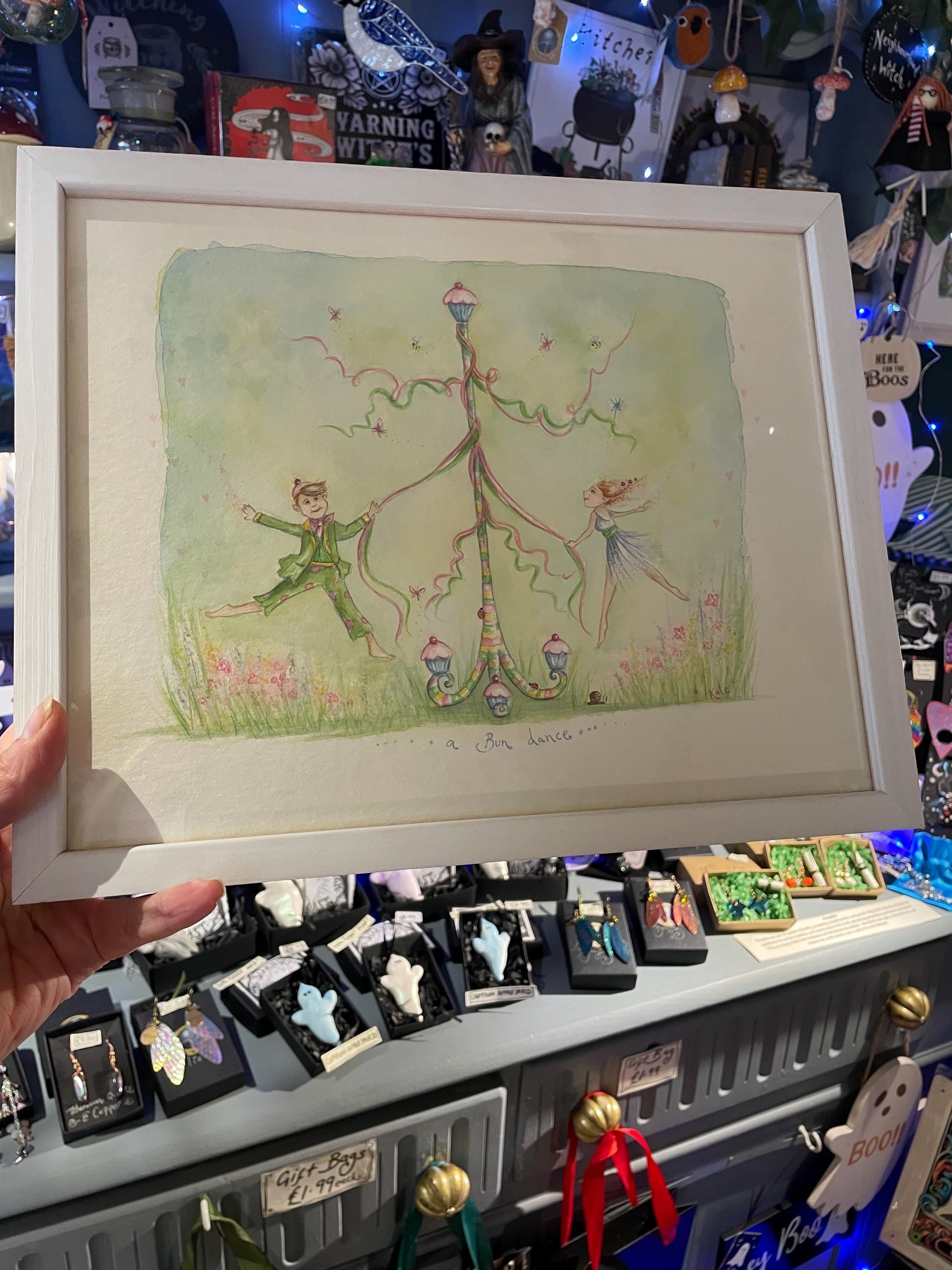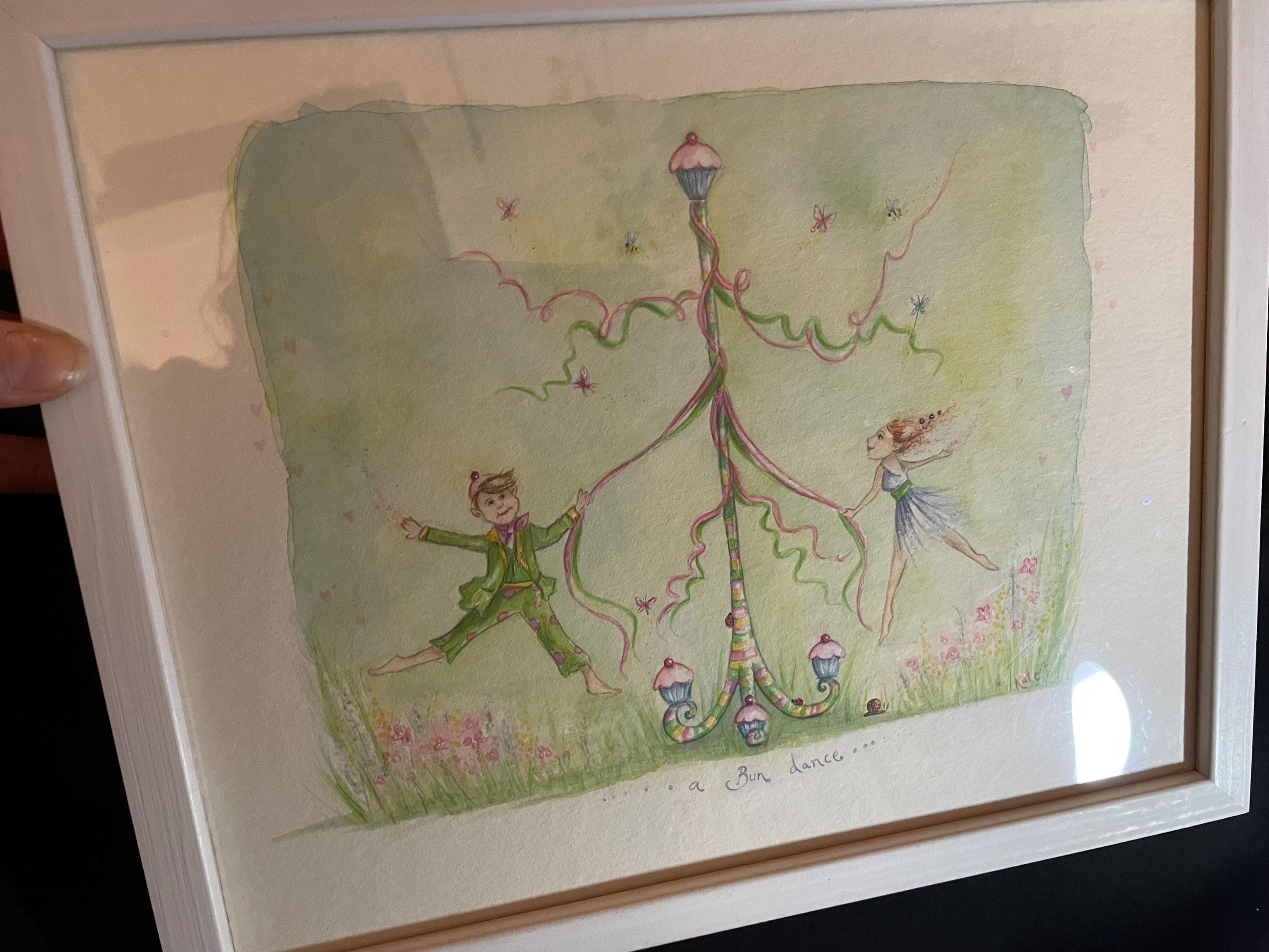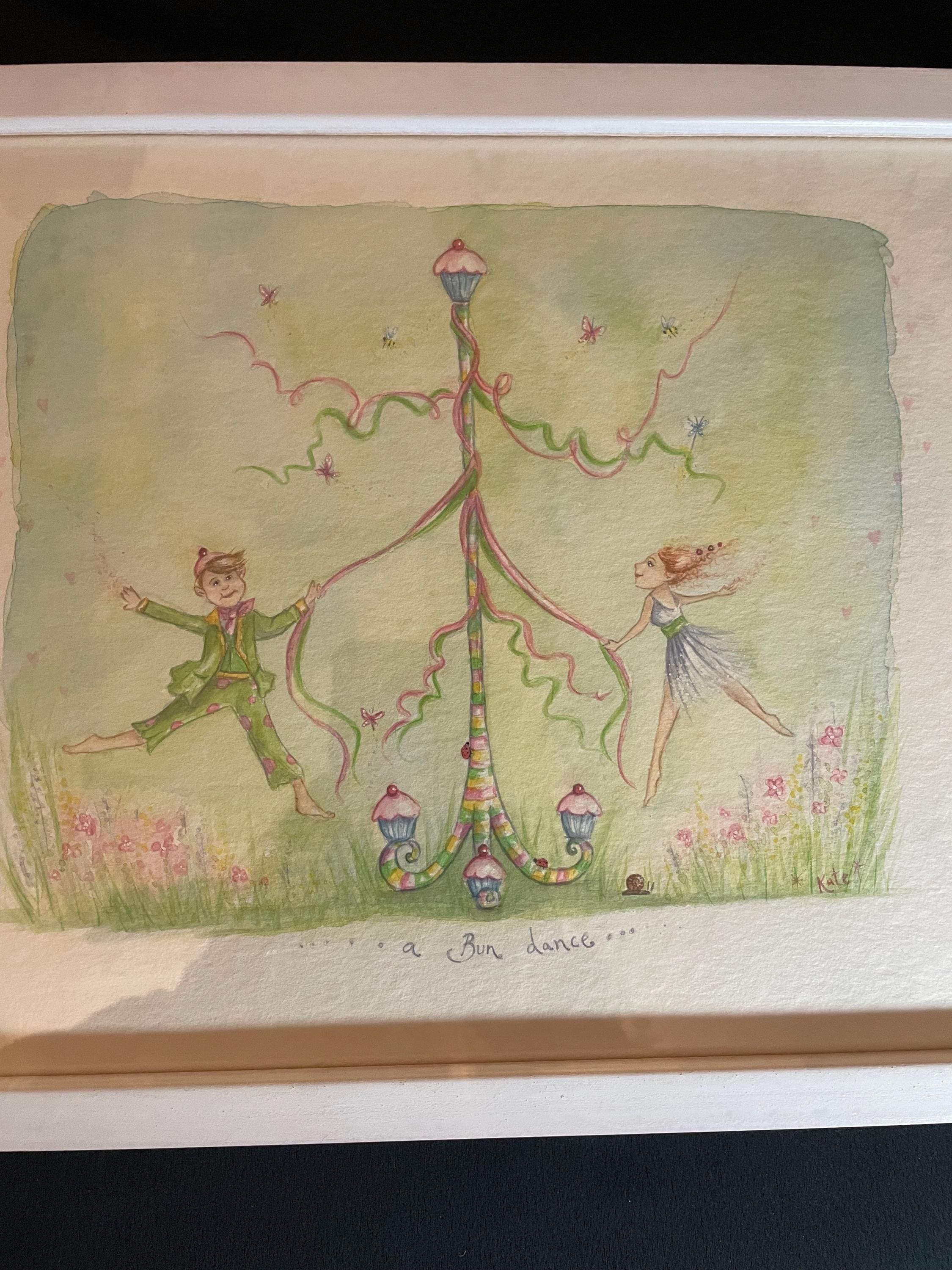 Painted as part of the Enchanted visions project for the theme Abundance, the painting is to celebrate the abundance of spring with the maypole surrounded by flowers, cakes, hearts & bumble bees